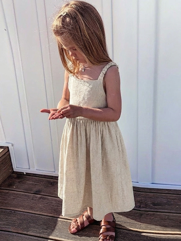 Linen Backless Suspender Dress - A-Line Summer Strap Dress for Girls