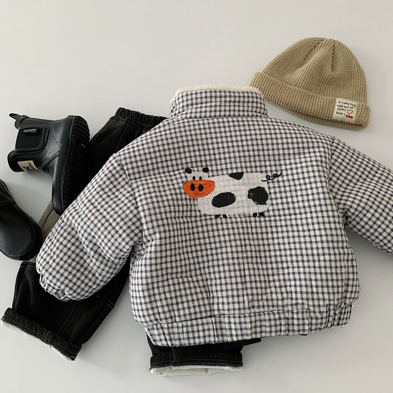 Plaid Cotton Puffer Jacket - Hooded Winter Coat for Kids