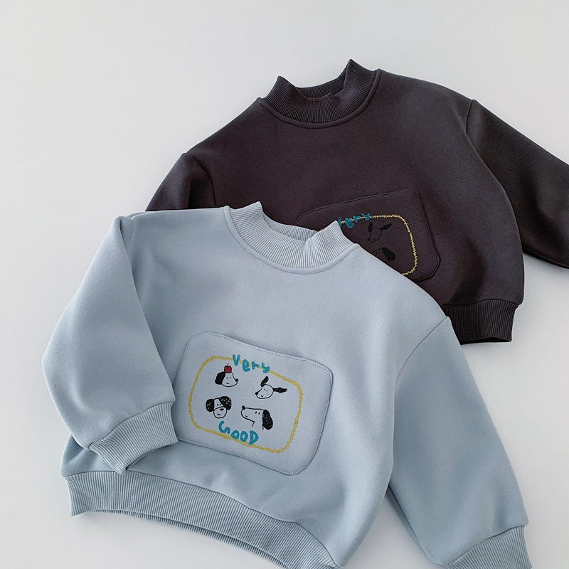 Fleece-Lined Cartoon Sweatshirt - Thick Velvet Pullover for Kids