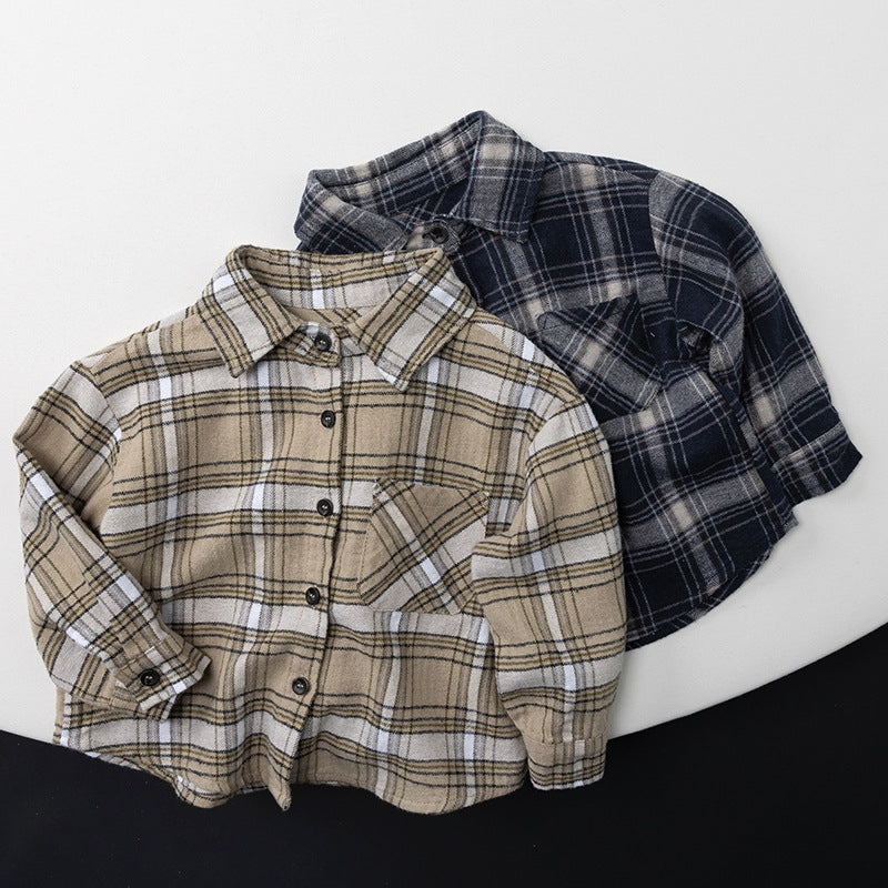 Plaid Button-Up Shirt - Long Sleeve V-Neck Casual Top for Kids