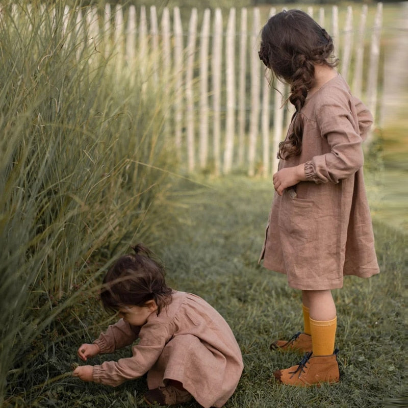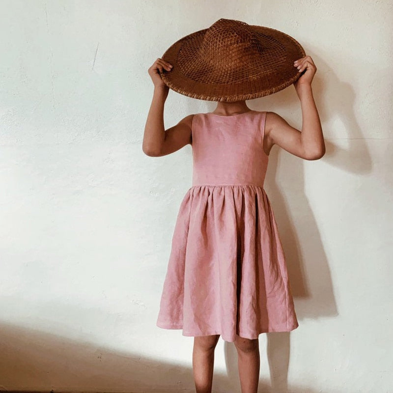 V-Back Linen Girls Dress