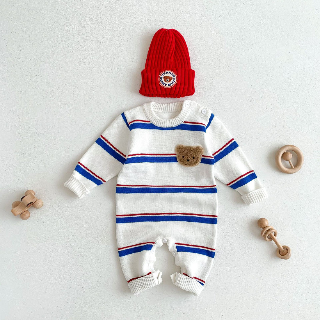 This adorable striped toddler jumpsuit is perfect for keeping your little one warm and comfortable...