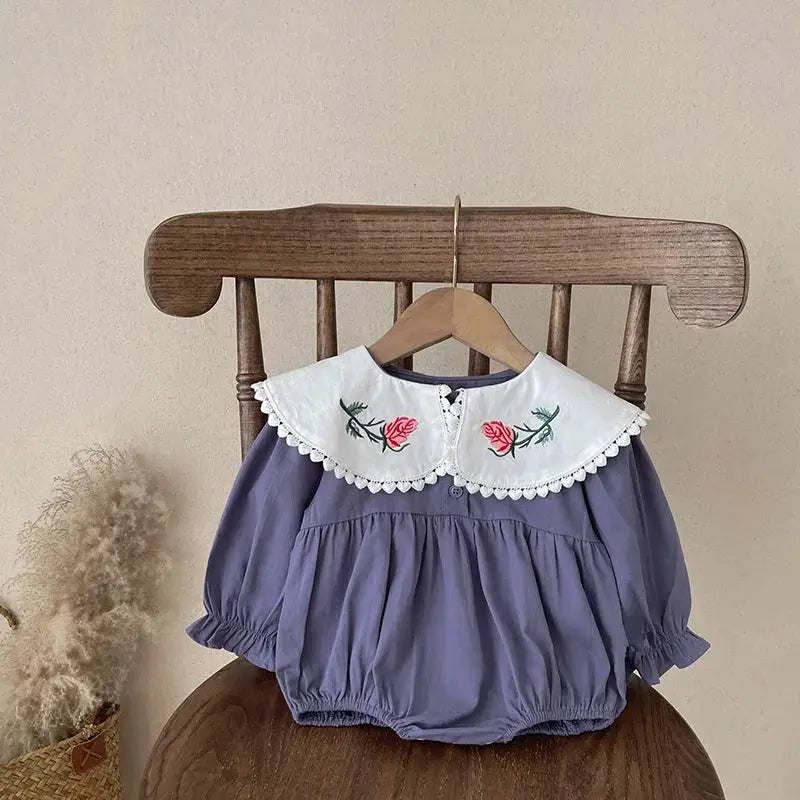 Girl's Peter Pan Collar Embroidered Onesie