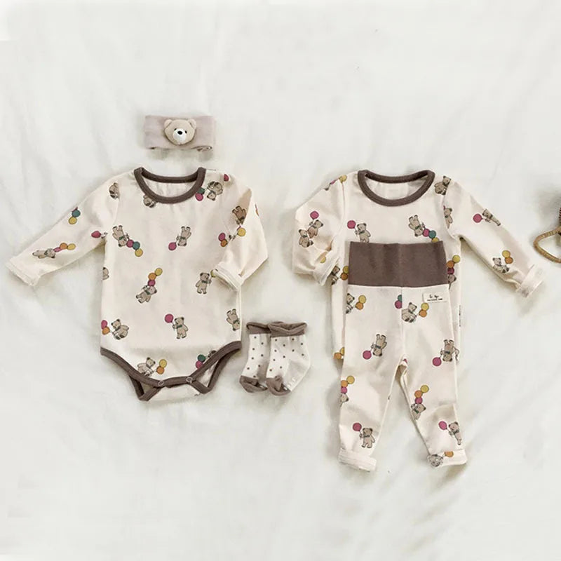 Cute Bear Print Baby Long-Sleeved Set & Onesie