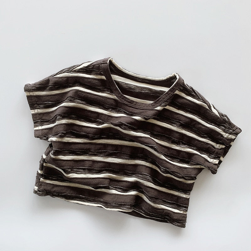 Introducing our Retro Short-Sleeved Striped T-Shirt, a must-have for your summer wardrobe! 🌞👕 Crafted from...