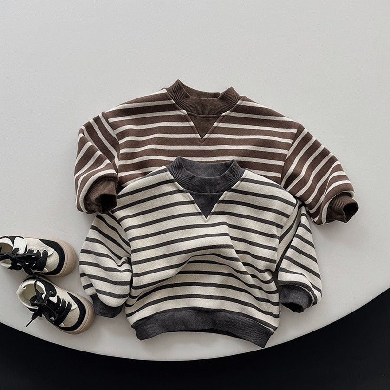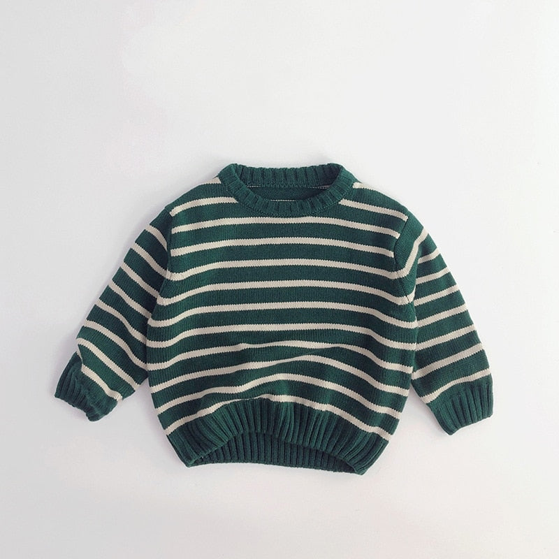 Unisex Kids' Casual Striped Long-Sleeved Knitted Cotton Pullover