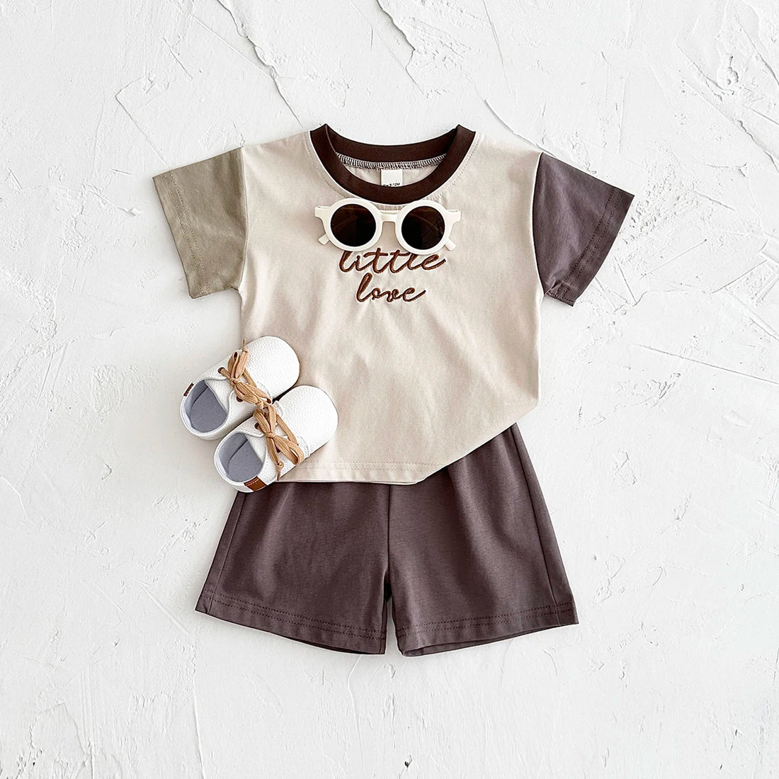 'Little Love' Color-Block Short Sleeved Tee & Shorts Set