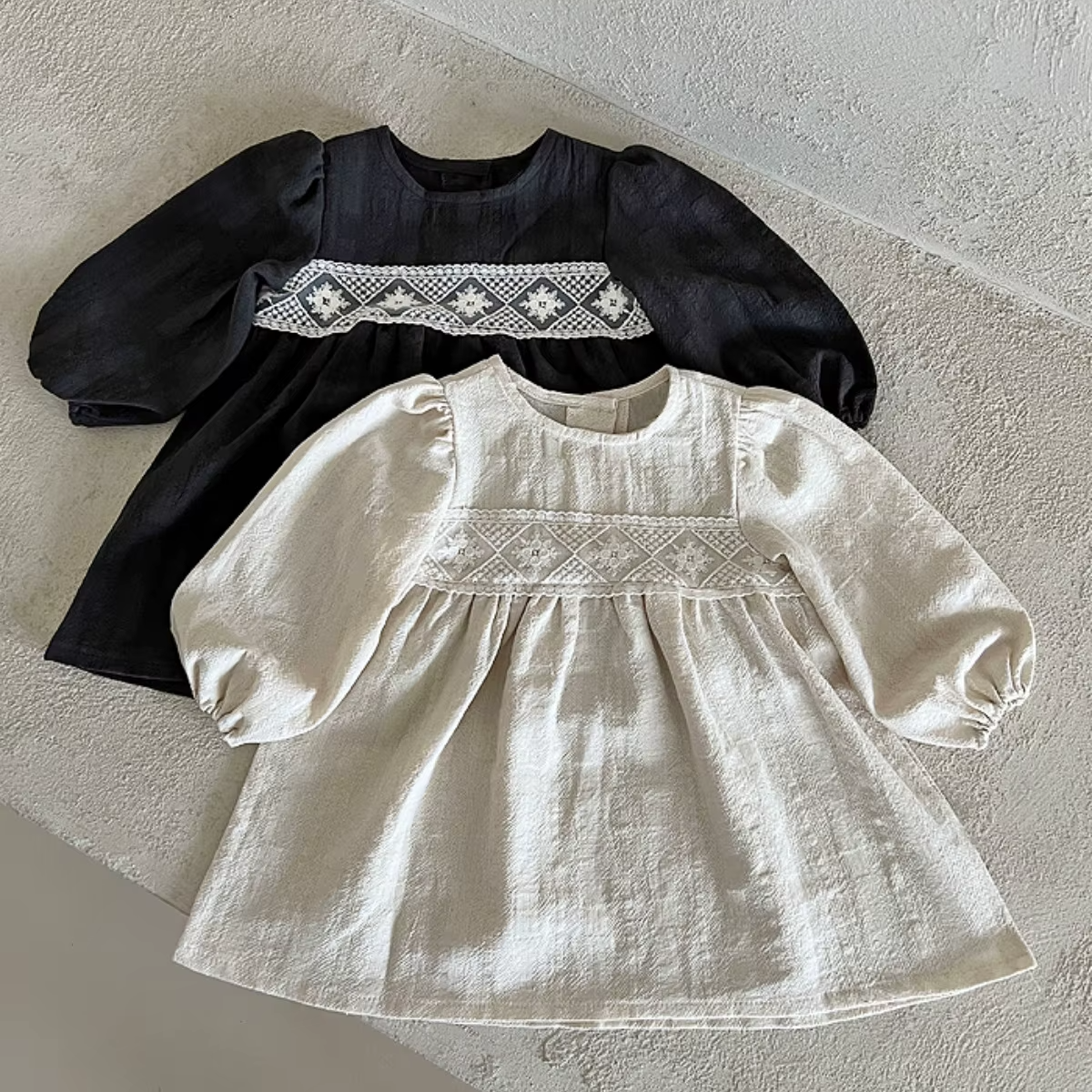 Dress your baby girl in the perfect blend of comfort and elegance with our Long Sleeve Lace Casual Dress! ✨