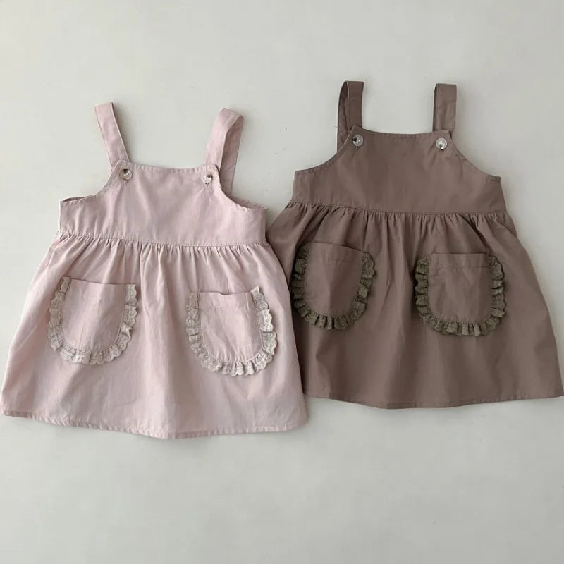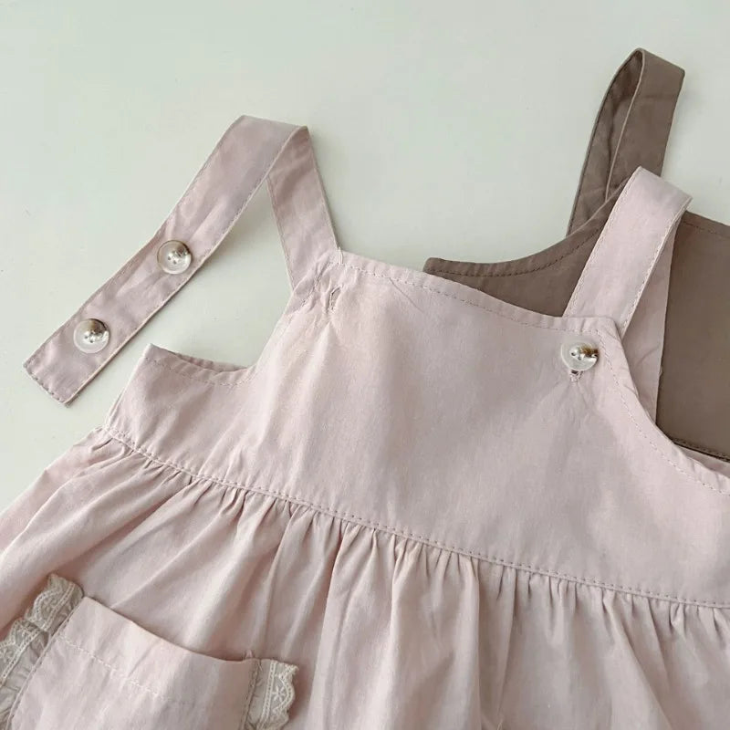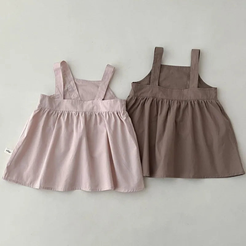 Girls Solid Suspenders Dress