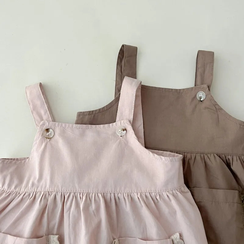 Charm in simplicity 🌸! Perfect for sunny days, this adorable Girls Solid Suspenders Dress keeps your little one comfy and stylish. A delicate lace trim adds a touch of elegance to the breathable cotton, mid-calf A-line cut. Ideal for ages 1-6, it's a summer staple! #CuteKidsFashion #SummerDress