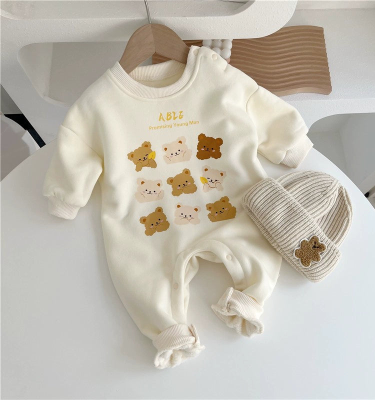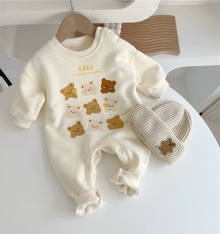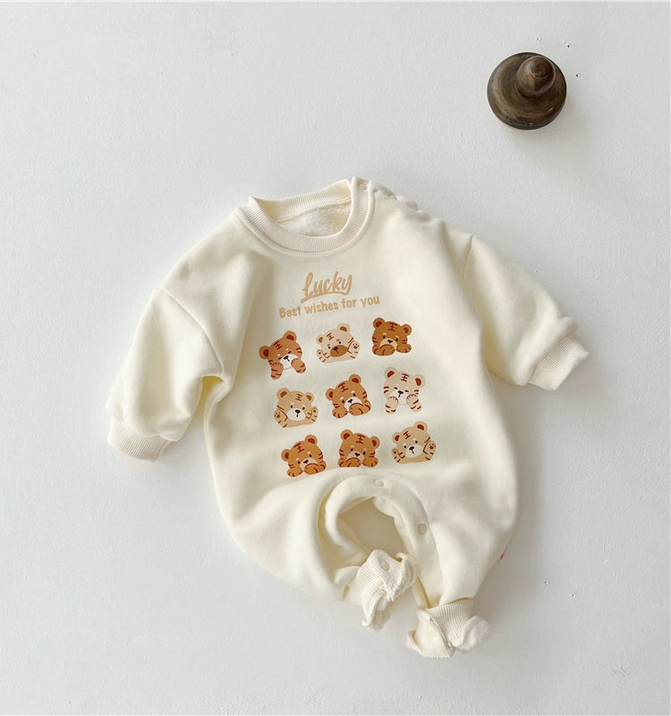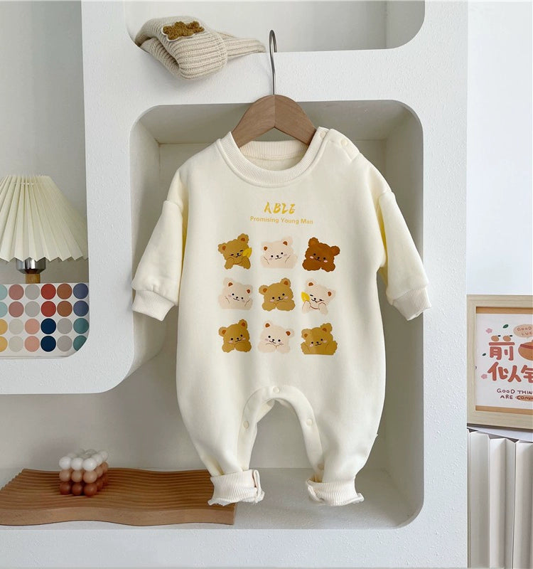 Wrap your little one in warmth and comfort with our Baby Fleece-Lined Unisex Teddy Romper 🧸❄️! Made from soft Lycra cotton with a cozy wool liner, this romper is perfect for keeping babies warm during chilly days. The adorable cartoon animation print adds a playful touch, while the pullover design with a crewneck makes it easy to slip on and off. Perfect for casual wear, this fleece-lined romper ensures your baby stays snug and stylish all season long. Fits true to size for ultimate comfort
