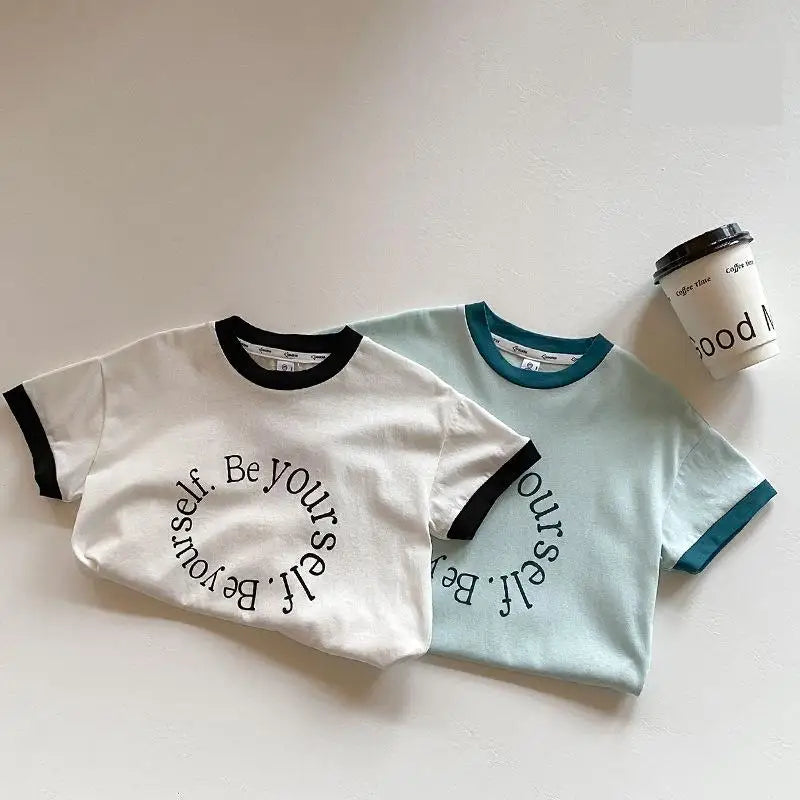 Encourage your little one to shine with our 'Be Yourself' Cute Unisex Tee! 🌟👕 Perfect for kids aged 1-6 years, this casual and comfy tee is made from 100% soft cotton, ensuring a gentle feel against their skin during summer adventures. The playful letter print adds a touch of inspiration and fun to their wardrobe. With its regular length, short sleeves, and classic O-neck collar, this tee fits true to size, offering a comfortable and relaxed fit. Ideal for both boys and girls, it's perfect for playdates, park outings, or simply lounging at home. Let your child express their unique personality with this delightful and motivational tee! 🌈💖🌞