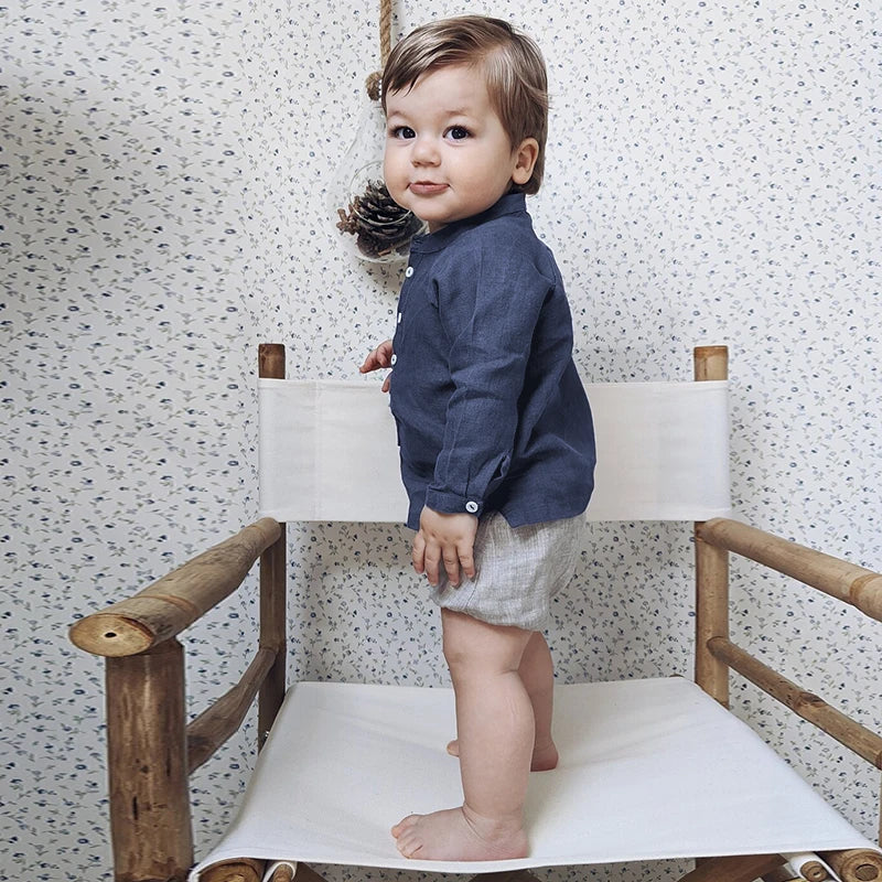 Dress your young gentleman in timeless style with our Boys Button-Down Linen Shirt. Crafted from a comfortable blend of linen and cotton, this retro-inspired casual shirt is designed to impress. The solid pattern and classic crew neck collar make it an ideal choice for boys aged 1-6 years. Enjoy extra warmth with the long sleeves, and ensure a comfortable fit with the regular cut. This shirt is a must-have addition to any little man's wardrobe, combining style and comfort seamlessly. š§š¼ Elevate his fashion game with our #BoysFashion, #StylishKids, and #LinenShirt. Shop now!