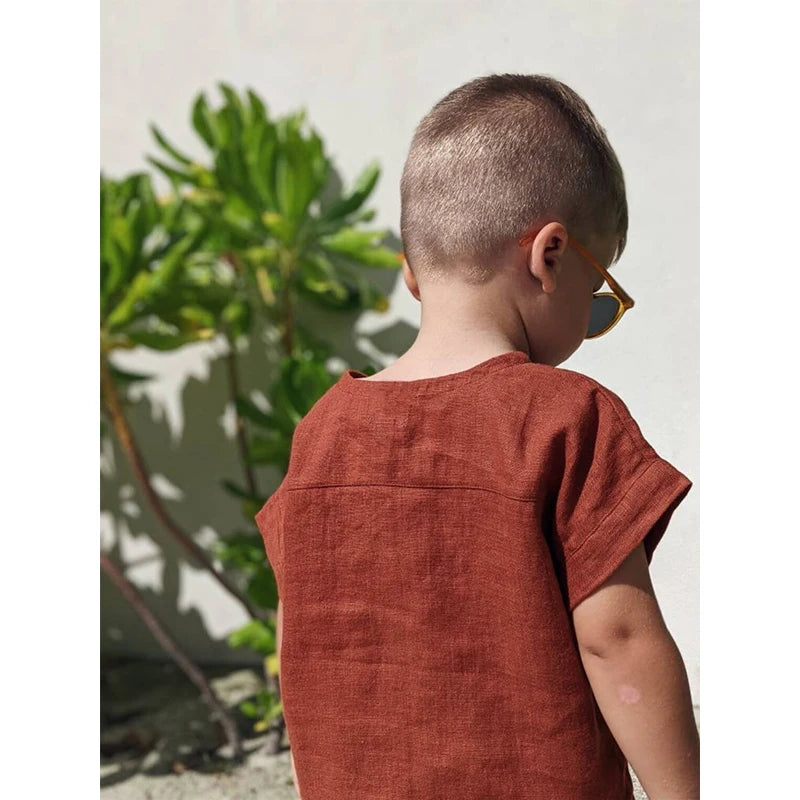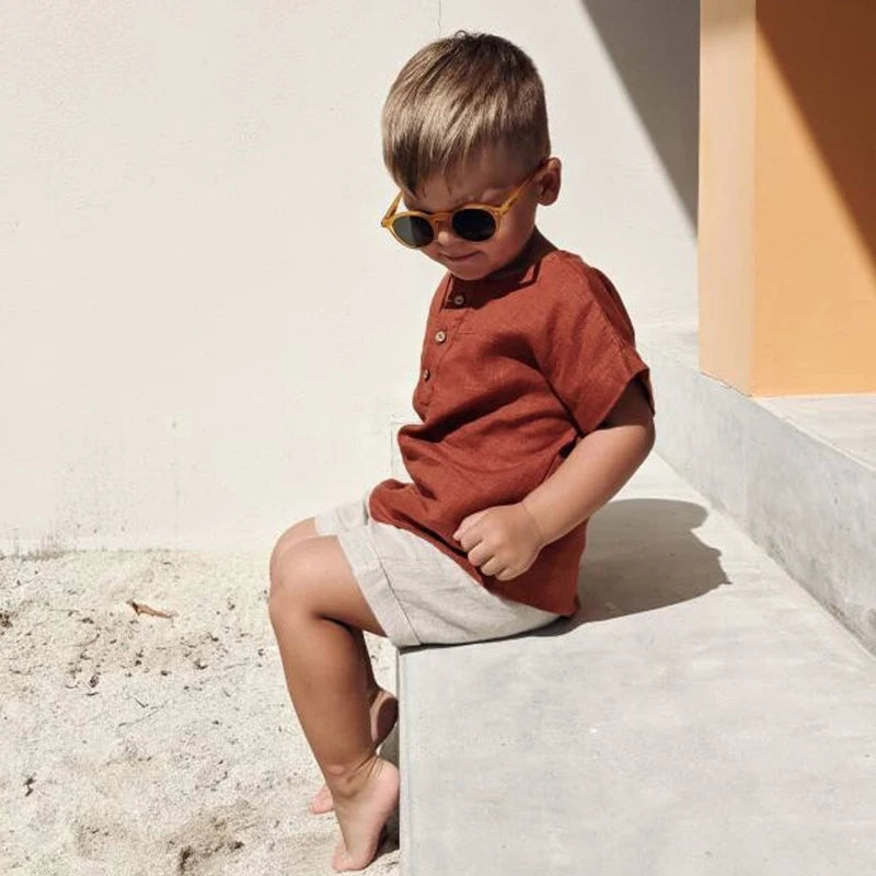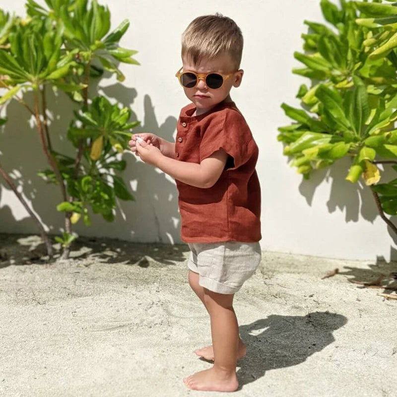 Elevate your little boy's summer wardrobe with our Boys Round-Neck Shirt, a stylish blend of comfort and charm! Crafted from a delightful mix of cotton and linen, this casual shirt is designed for the fashionable youngster aged 1-6 years. Our trendy tee features a classic O-neck collar and regular length, ensuring a comfortable and stylish fit. Choose between the timeless striped or solid pattern to add a touch of charm to your little one's look. With short sleeves and a true-to-size fit, this shirt is the perfect addition to your boy's summer attire. Shop now to dress your little guy in the latest fashion trends and make a statement! šš