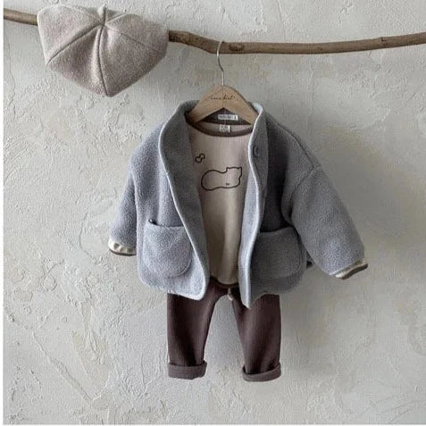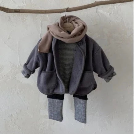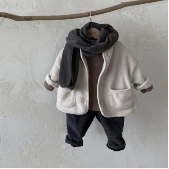 Bundle up your little one in style with our Button-Down Fleece Jacket! 🧥 Made with cozy cotton, this unisex jacket is perfect for babies aged 9–36 months. The O-neck collar and regular sleeve style offer a comfortable fit, while the solid pattern adds a touch of charm. Crafted from worsted fabric, this jacket is ideal for chilly winter days. Don't let the cold stop your little adventurer; get them ready for any outdoor activity with this warm and fashionable outerwear. ❄️👶