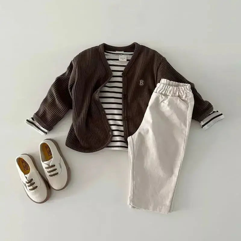 Stay cozy and stylish with our Button-Down Solid Cardigan. Made from soft cotton, this unisex cardigan is perfect for little ones aged 9 months to 6 years. The O-neck collar and regular sleeve style add a touch of elegance, while the worsted fabric ensures warmth. The solid pattern and long sleeves make it versatile for both spring and autumn seasons. With a true-to-size fit, this cardigan is a must-have addition to your little one's wardrobe. Embrace comfort and fashion with our Button-Down Solid Cardigan. 🧥💕