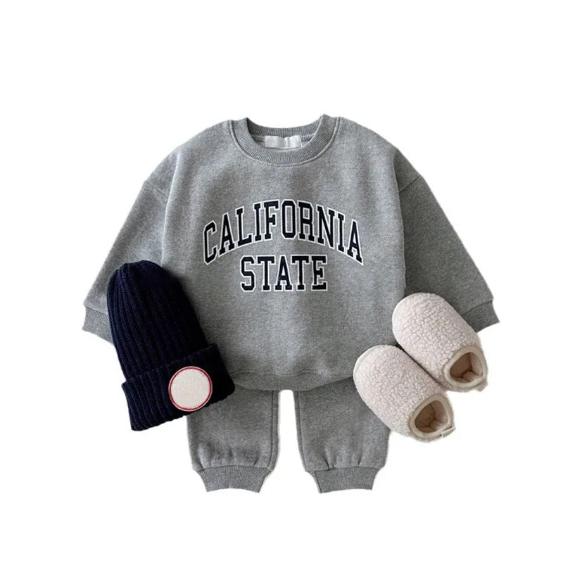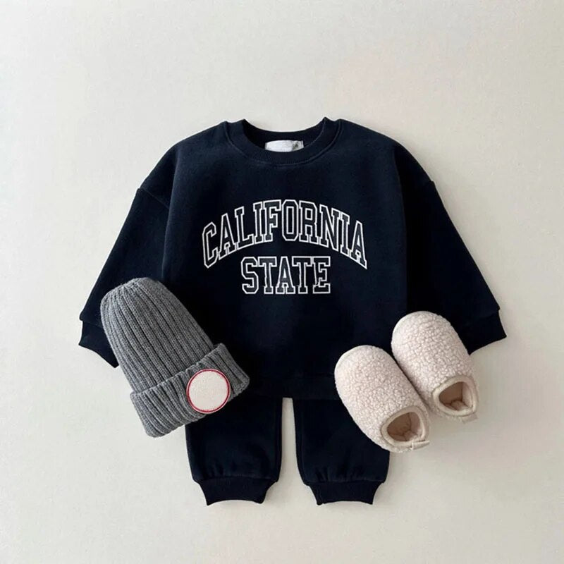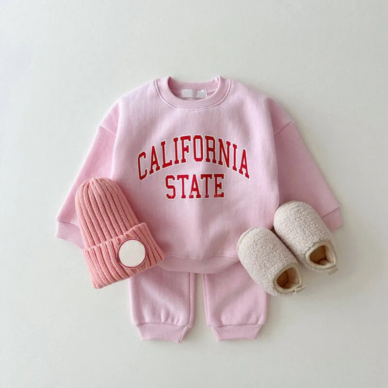 Dress your little one in style with this 'CALIFORNIA STATE' Jogger Set. Crafted from cotton, this unisex set keeps your child comfortable and warm in Autumn. The O-Neck collar, pullover closure, and regular fit make it easy to dress your child every day. The letter pattern and long sleeve length complete the look. 🤩 Crafted for kids aged 7 months to 6 years with love 🥰 and attention to detail! 🧐