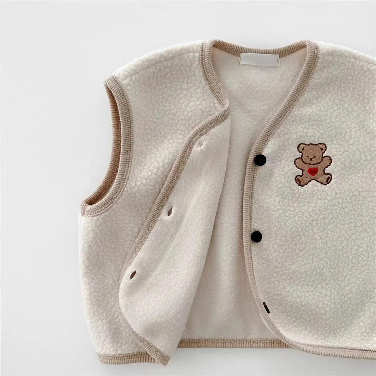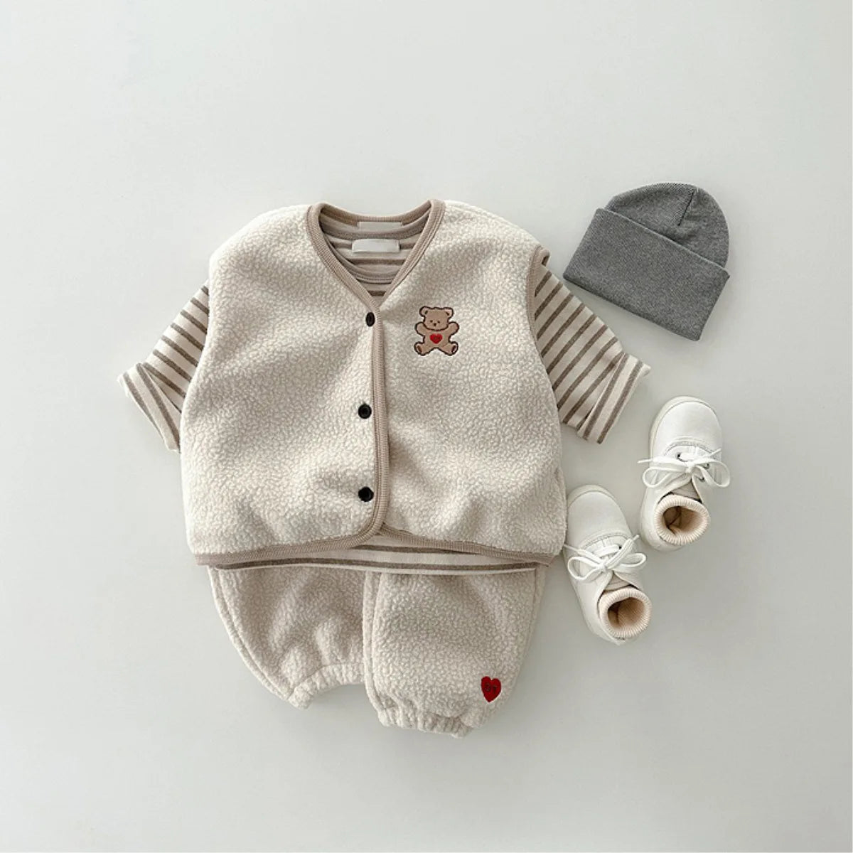 Cartoon Bear Fleece Vest & Pants Set