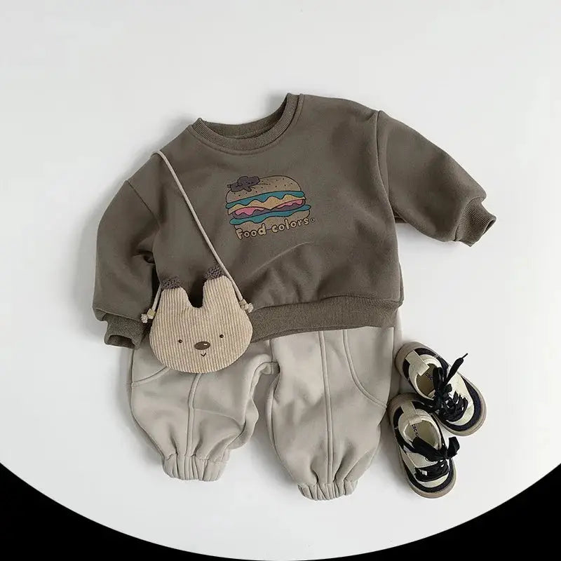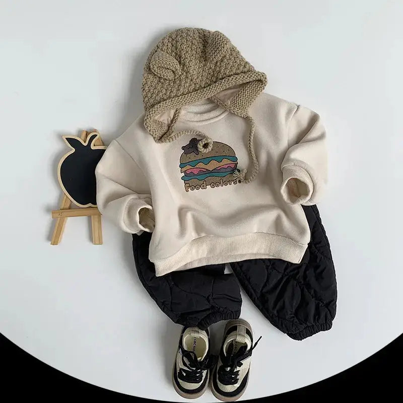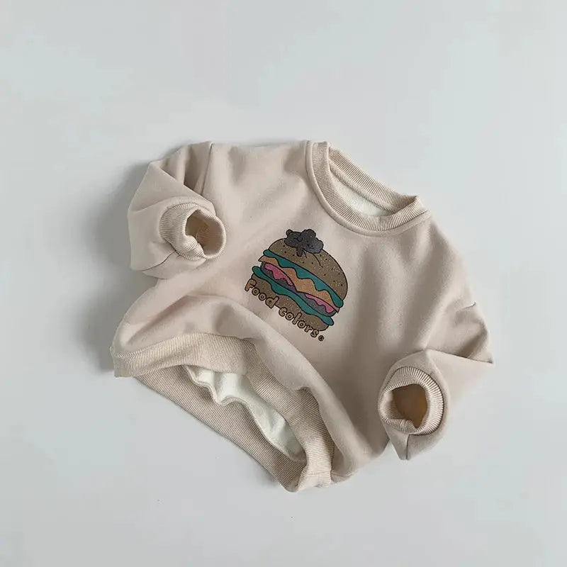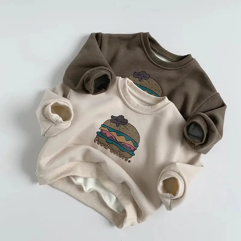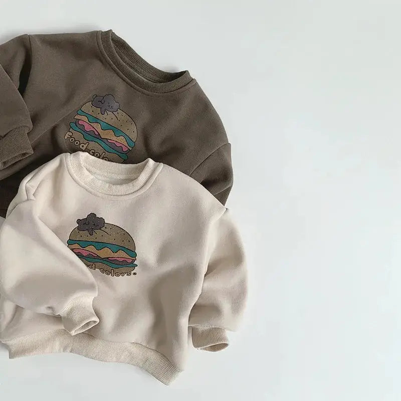 Add a dash of fun to your little oneโs wardrobe with this adorable Cartoon Hamburger Fleece Sweatshirt ๐! Made from soft cotton and perfect for autumn, this unisex sweatshirt features a playful hamburger print that will have kids smiling ๐. With long sleeves and a cozy fleece interior, itโs designed to keep your child warm on those cool autumn days. Fits true to size for kids aged 1 to 6 years, making it a perfect pick for casual outings or playtime adventures! ๐