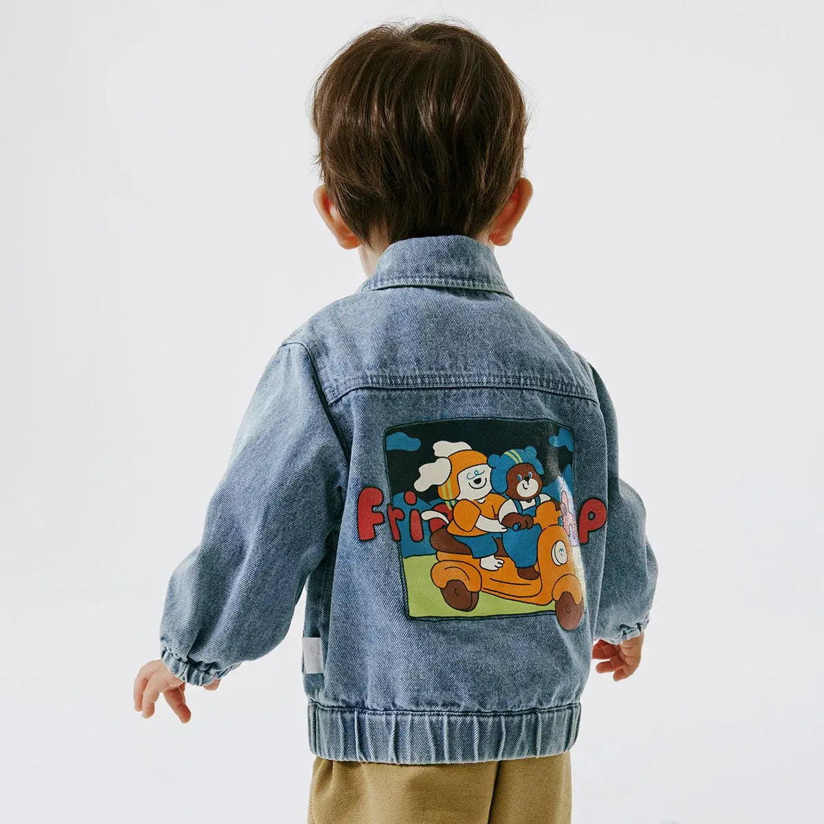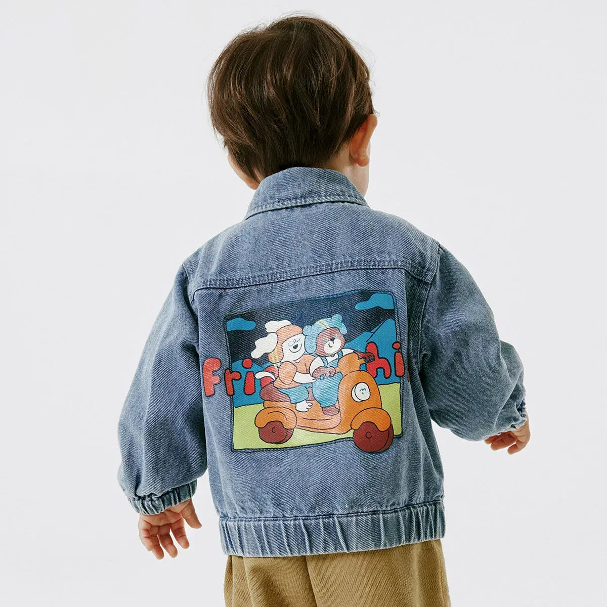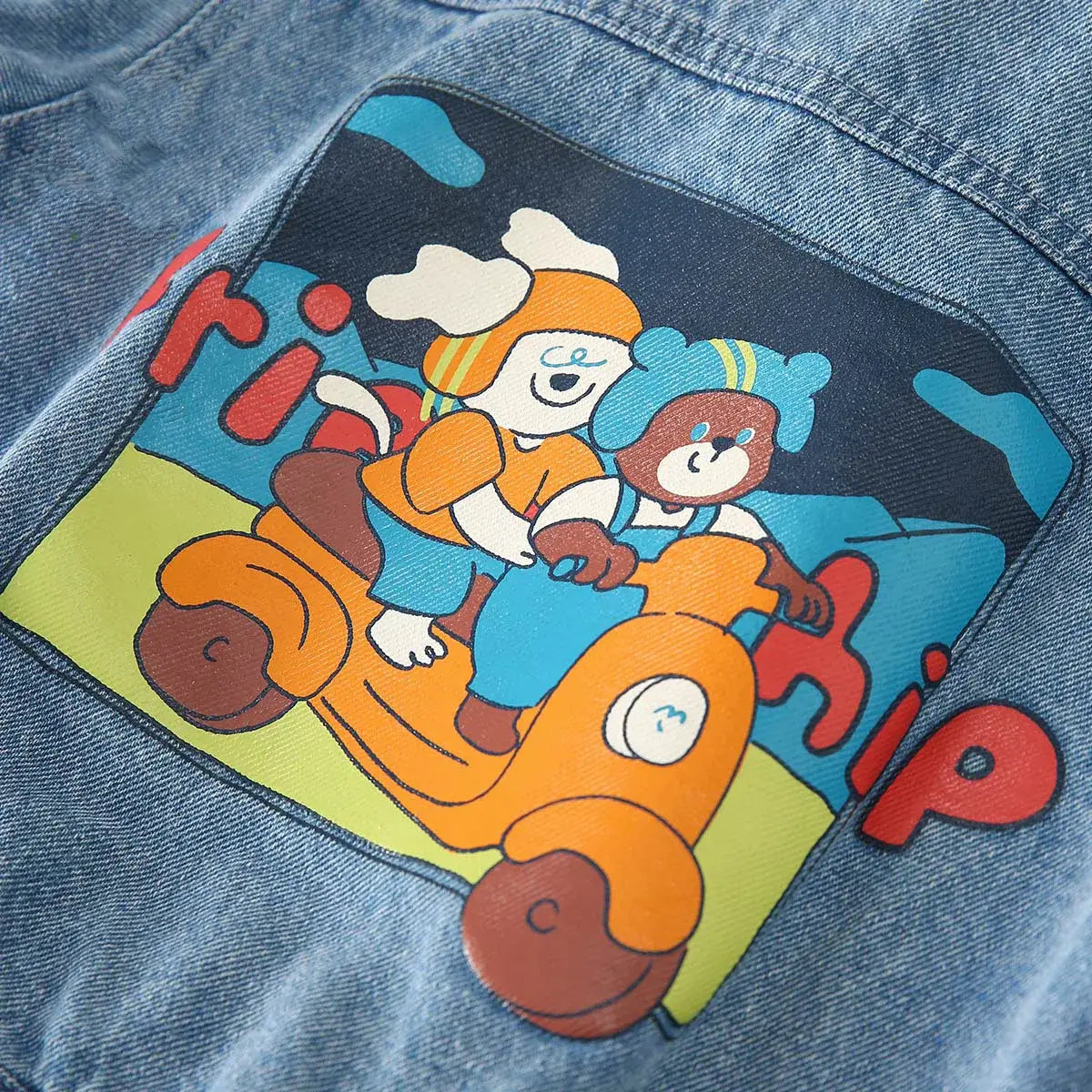 Get your little one ready for some fun adventures with this adorable Cartoon Print Denim Jacket. Made from high-quality cotton, this unisex jacket is perfect for kids aged 1-6 years. The turn-down collar and regular sleeve style add a stylish touch, while the cartoon print adds a playful charm. With a comfortable fit that's true to size, this jacket is ideal for all-day wear. Whether they're playing outdoors or heading to a party, your child will look cute and fashionable in this versatile outerwear. Embrace the joy of dressing up with this delightful denim jacket! 🌟🧥