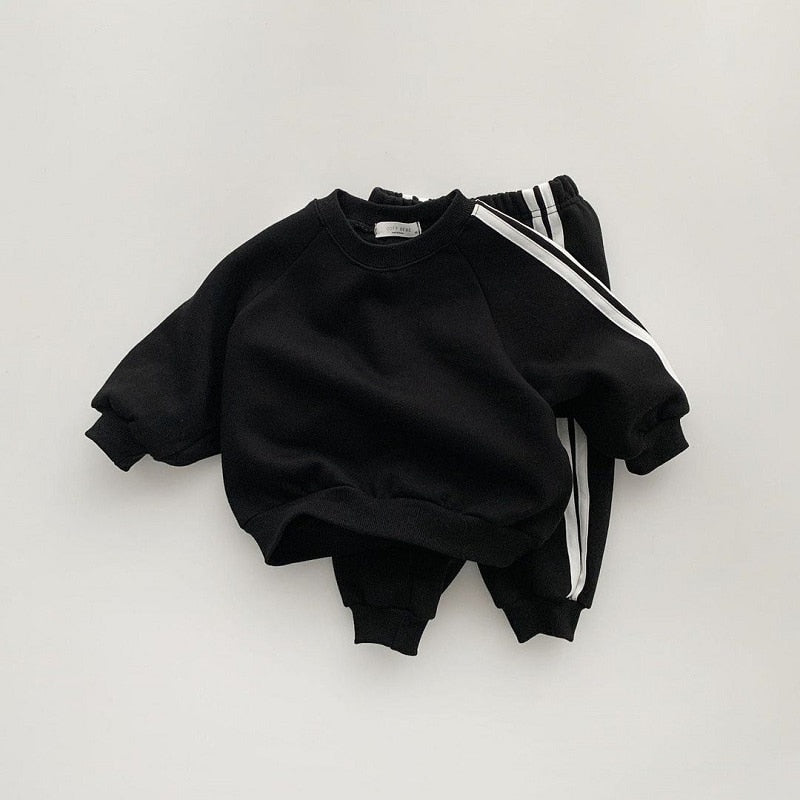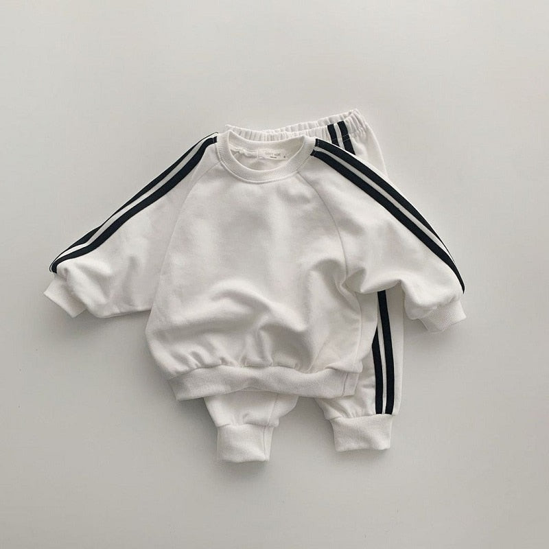This stylish striped set is ideal for keeping your tyke warm & dapper in spring & autumn. Crafted of a comfy polyester, acetate, and acrylic blend, the relaxed fit lets 'em move freely. The classic stripes & cozy O-neck collar provide a snazzy look, while the pullover closure makes it easy for busy bees to get toggled up & out. Plus, the unisex design makes it great for both boys & girls!