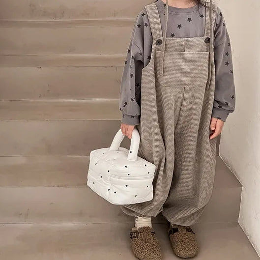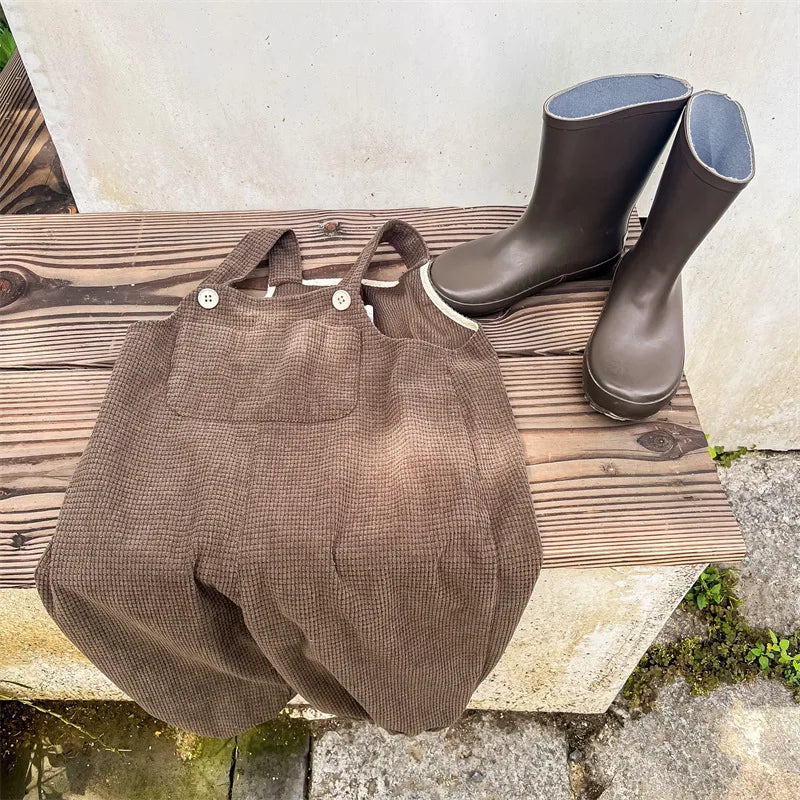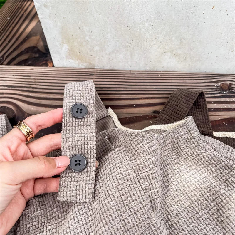 Get your little ones ready for stylish adventures with our Children's Solid Waffle Overalls. Crafted from soft and breathable cotton, these overalls are perfect for the spring and autumn seasons. The loose fit ensures comfort, while the button-fly closure adds a touch of charm. Available in a range of solid colors, these unisex overalls are designed to fit children aged 1-6 years. š Shop now and let your kids explore the world in style! š