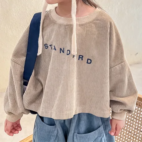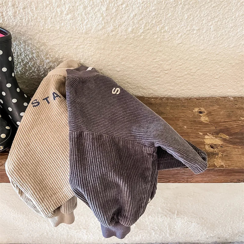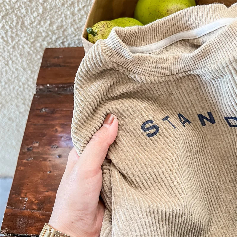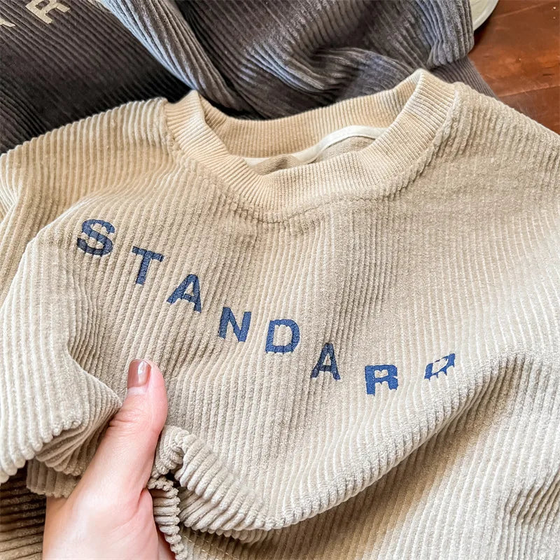 Introducing our Corduroy Printed Sweatshirt, a must-have for your little ones aged 1-6 years. Crafted with care from premium cotton, this unisex sweatshirt guarantees comfort and style. The casual design and long sleeves make it perfect for any occasion. Featuring a trendy letter pattern, this sweatshirt adds a playful touch to their wardrobe. With its regular fit and true-to-size dimensions, it's easy to find the perfect fit. 🌟 Grab this cozy and adorable sweatshirt today! 🌈