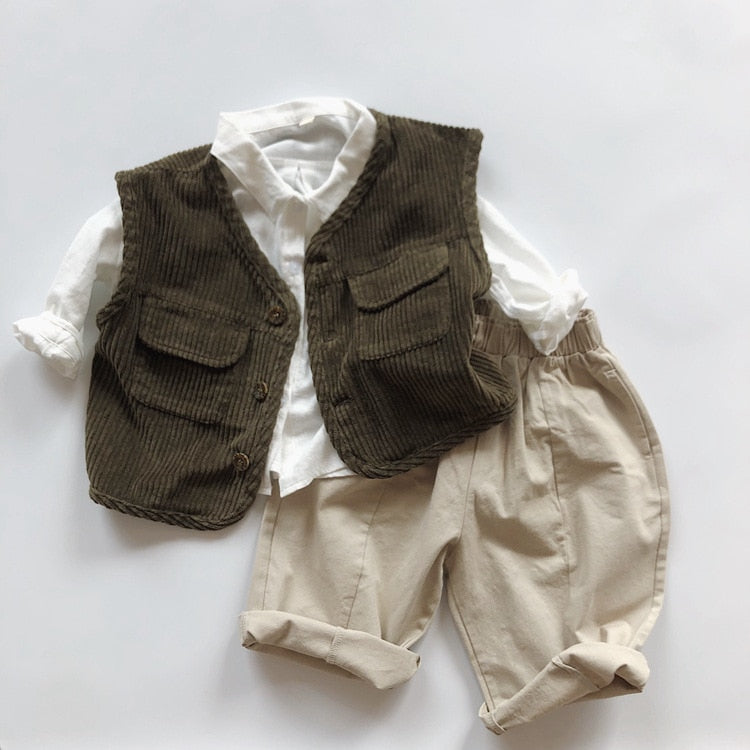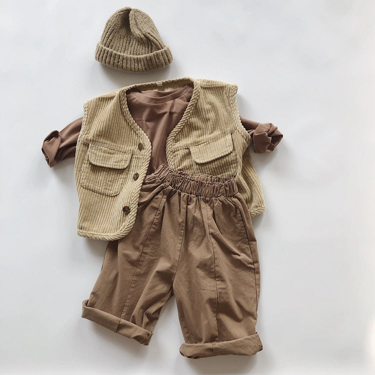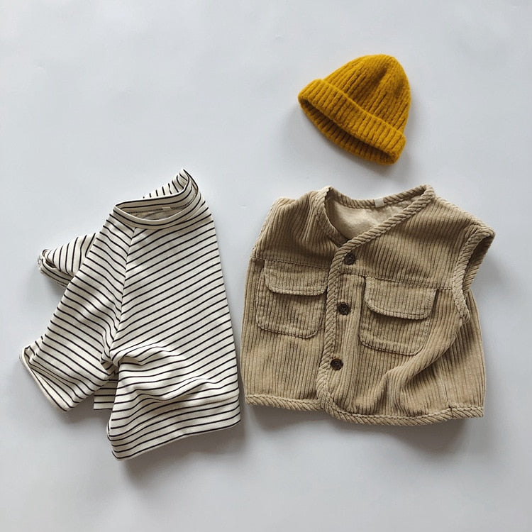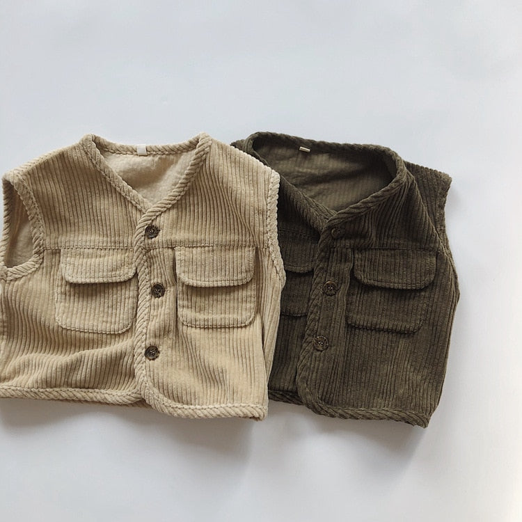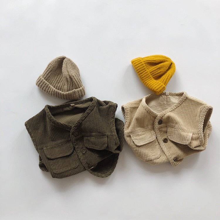 This Corduroy vest will keep you cozy all Spring & Autumn— crafted from supremely soft Worsted Cotton, it's thick and casual to wear, with a pleasing V-Neck collar and regular length fit. Unisex and comfortable, take your normal size and bring the warm vibes!