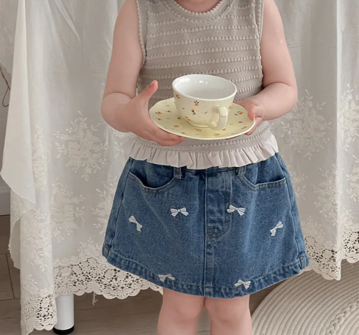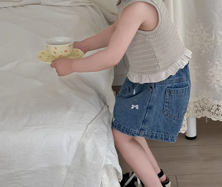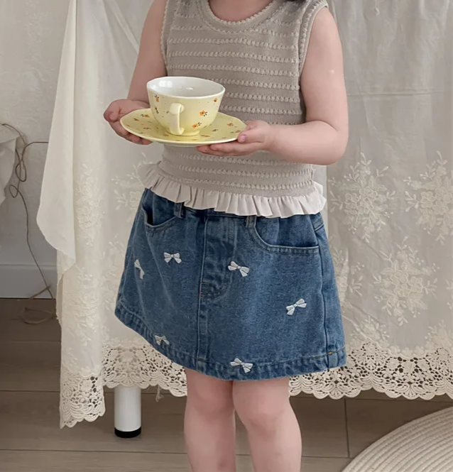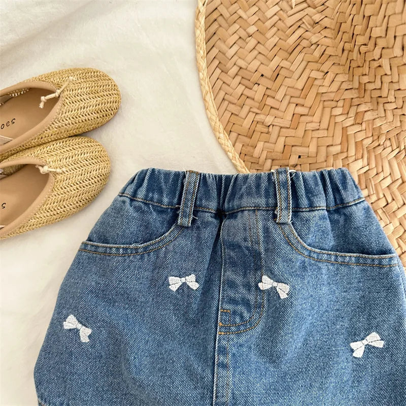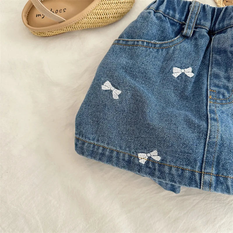 Twirl into summer fun with this adorable Cute Bow Print Denim Skort! ☀️ Made from cool cotton, this comfy skort features a playful bow detail and a classic denim design. The elastic waist ensures a comfortable fit, while the relaxed silhouette allows for plenty of room to move and groove. Pair it with a cute t-shirt or tank top for a stylish summer outfit! 😎 #girlsfashion #summerstyle #denimskirt