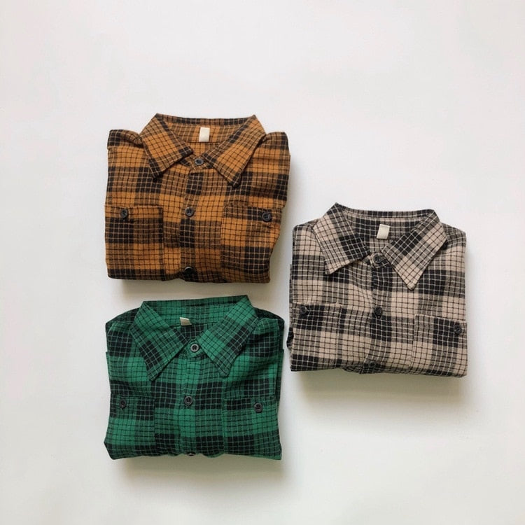 This boy's shirt flaunts a traditional Korean-style design with full sleeves and a plaid pattern that is ideal for the spring and autumn months. Comprised of cotton, the shirt has regular length and a turn-down collar and is crafted using worsted fabric. Sizing is straightforward, as it fits true to size, allowing for easy selection.