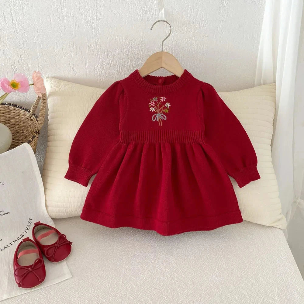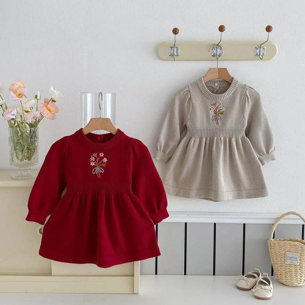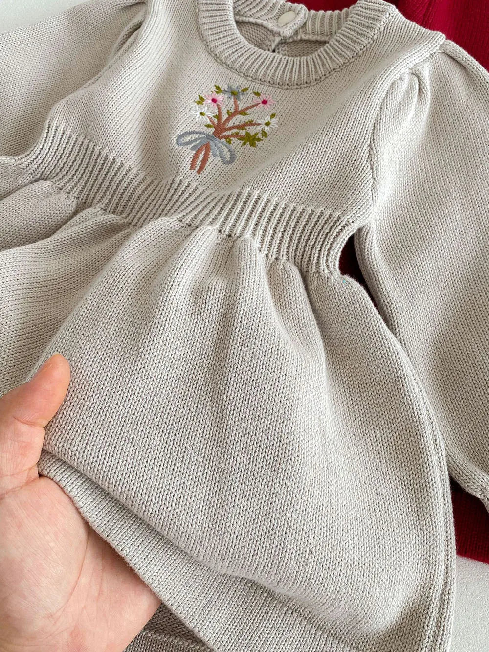 The Embroidered Flower Print Knit Dress is an autumn essential for your little fashionista 🌸. This cute A-line dress, available in vibrant red and soft light khaki, is perfect for girls aged 9 months to 4 years. The delicate flower embroidery adds a charming touch, while the ruched detailing and knee-length design ensure a playful yet elegant silhouette. Crafted from a cozy blend of cotton, acrylic, and polyester, this dress is both comfortable and stylish. Whether for a special occasion or everyday wear, this knit dress fits true to size, making it a delightful addition to your baby girl's wardrobe 🍂👗.