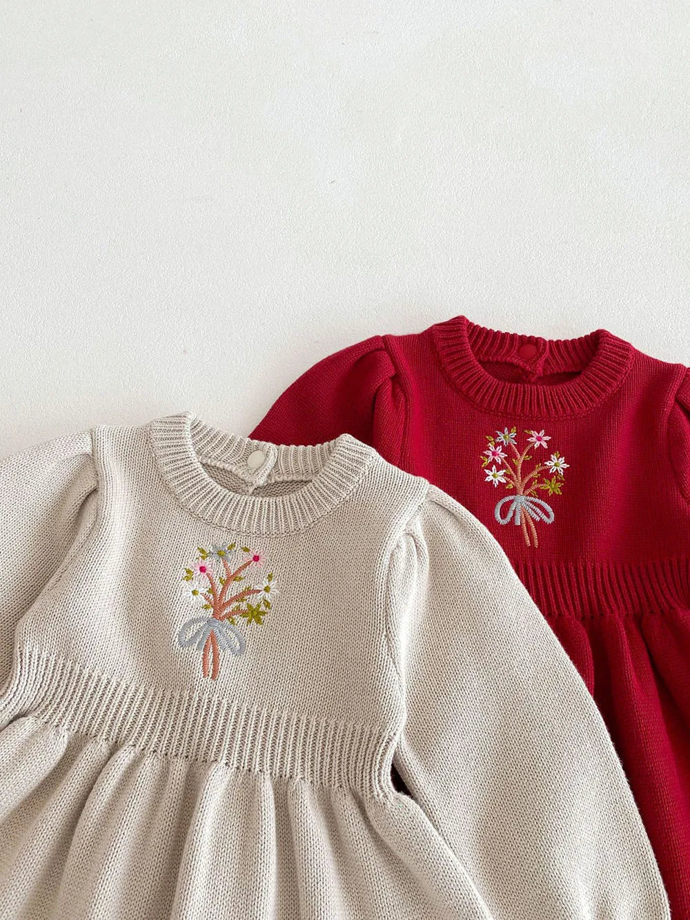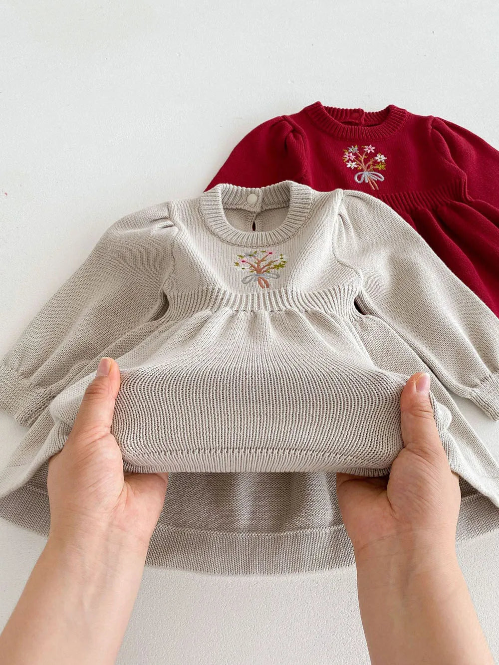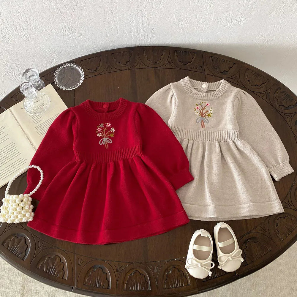 The Embroidered Flower Print Knit Dress is an autumn essential for your little fashionista 🌸. This cute A-line dress, available in vibrant red and soft light khaki, is perfect for girls aged 9 months to 4 years. The delicate flower embroidery adds a charming touch, while the ruched detailing and knee-length design ensure a playful yet elegant silhouette. Crafted from a cozy blend of cotton, acrylic, and polyester, this dress is both comfortable and stylish. Whether for a special occasion or everyday wear, this knit dress fits true to size, making it a delightful addition to your baby girl's wardrobe 🍂👗.