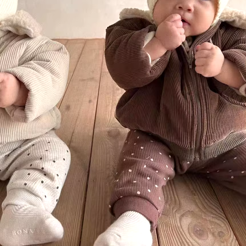 Keep your little one cozy and stylish this winter with our Fleece-Lined Thick Corduroy Coat ❄️👶! Designed for babies aged 9 to 36 months, this unisex coat features a soft fleece lining and thick corduroy fabric to ensure warmth on chilly days. The turn-down collar adds a touch of classic charm, while the zipper closure makes it easy to bundle up your baby in seconds. Perfect for winter outings, this coat fits true to size and is a must-have for your baby's winter wardrobe!