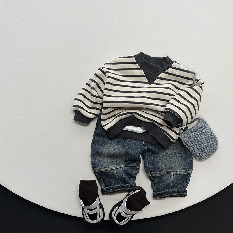 Capture the essence of winter in the must-have Fleece Striped Sweatshirt! This ultra-comfy piece features stylishly bold stripes, a soft cotton construction, and a luxurious fleecy feel. Perfect for everyday wear, the unisex design looks great on everyone. Treat yourself to the timeless style of this beautiful winter staple!
