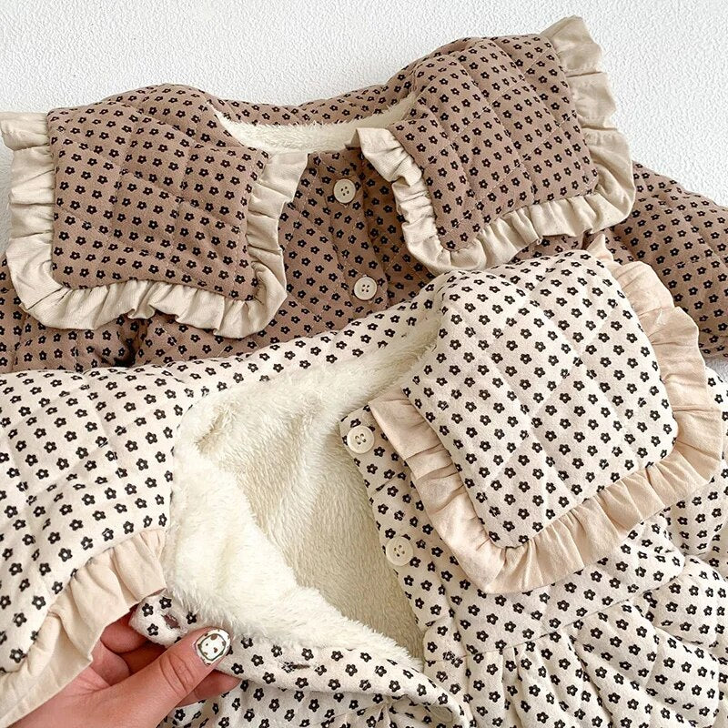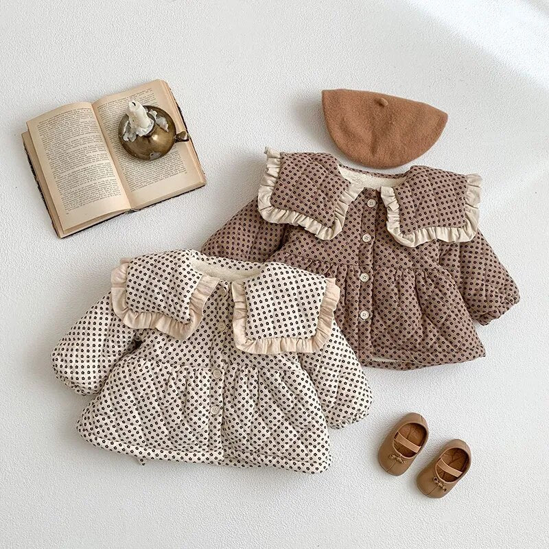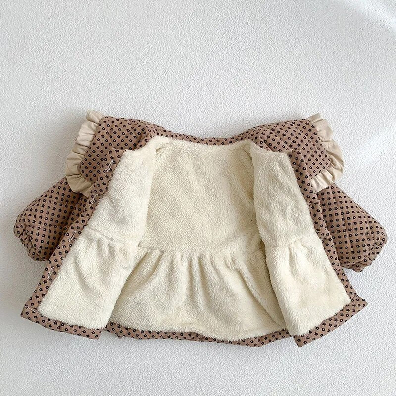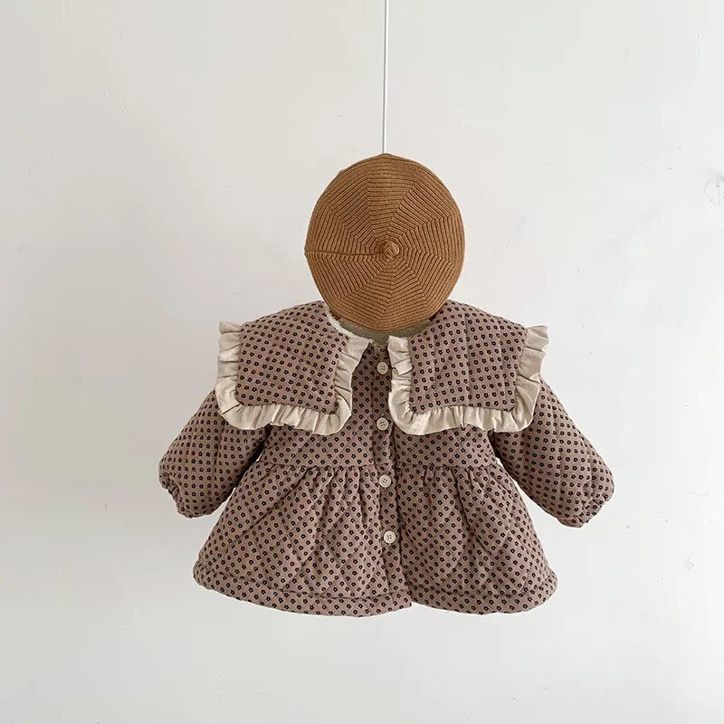 Introducing the stylish Floral Button-Down Parka for baby girls aged 9 to 48 months. Made from soft and cozy cotton fabric, this parka will keep your little one warm during the spring and autumn seasons. With its turn-down collar and regular sleeve style, it offers a comfortable fit that's perfect for everyday wear. The parka features a delightful floral pattern, adding a touch of charm to any outfit. Get ready for adorable outdoor adventures with this cute and fashionable parka! 🌸🧥