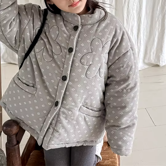 Brighten up winter days with our Floral Pattern Winter Jacket! 🌸❄️ This beautiful jacket combines warmth and style, featuring a charming floral pattern that adds a touch of whimsy to any outfit. Crafted from soft cotton with a heavy, quilted design, this jacket is made to keep your little one cozy and comfortable during chilly weather. The O-neck collar and easy pullover style make it perfect for layering, while the long sleeves provide extra warmth. Designed for girls aged 1-6, it’s an ideal choice for playful days out or family gatherings. 🌟💖