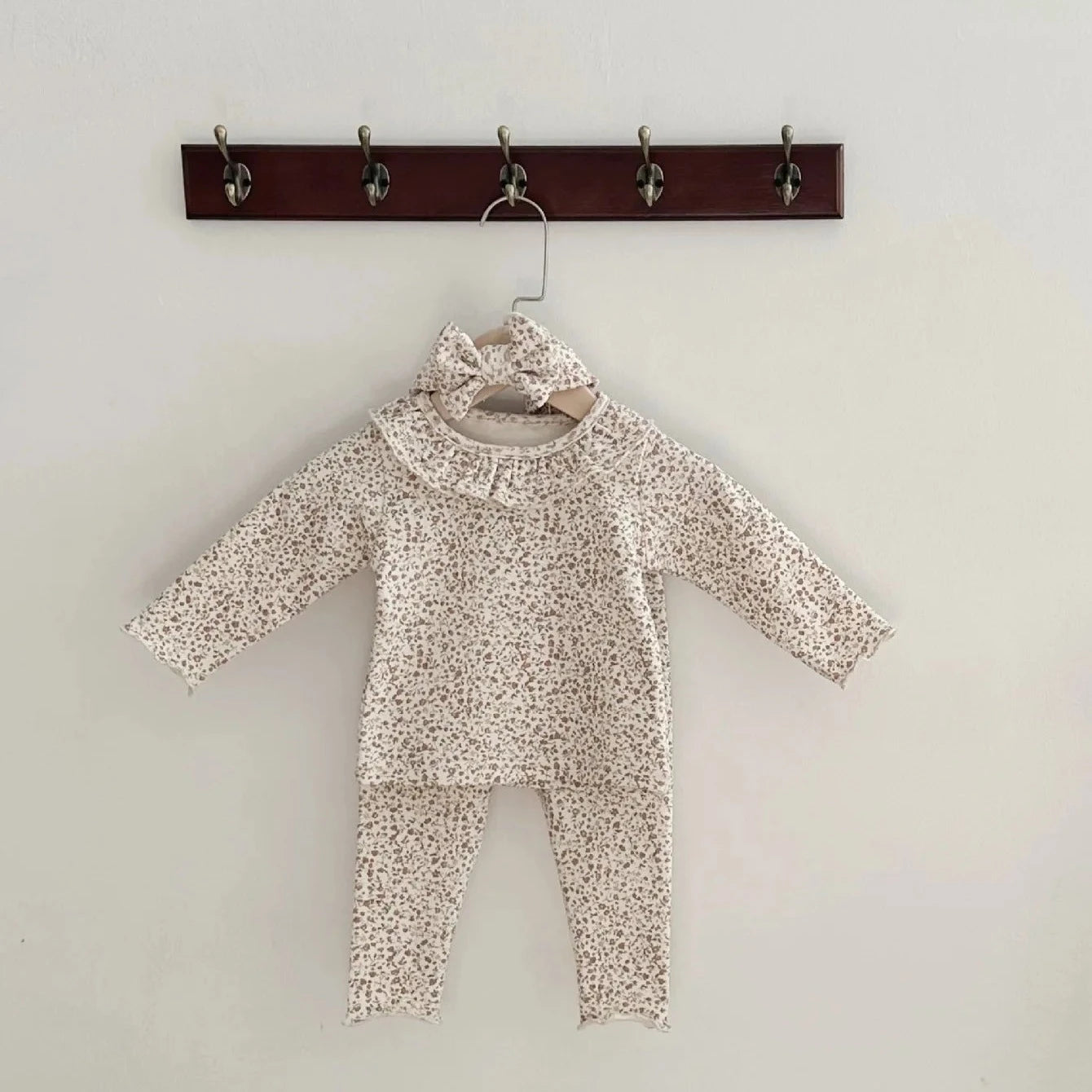 Upgrade your little one's wardrobe with this adorable Floral Top, Leggings & Headband Set. Crafted from soft, comfortable cotton, this casual set is perfect for baby girls aged 6-24 months. The full-length sleeves and regular fit ensure a cozy and stylish look. The charming floral pattern adds a touch of sweetness, while the pullover design and o-neck collar make dressing a breeze. Complete with matching leggings and a headband, this set is both cute and practical. 🌸✨