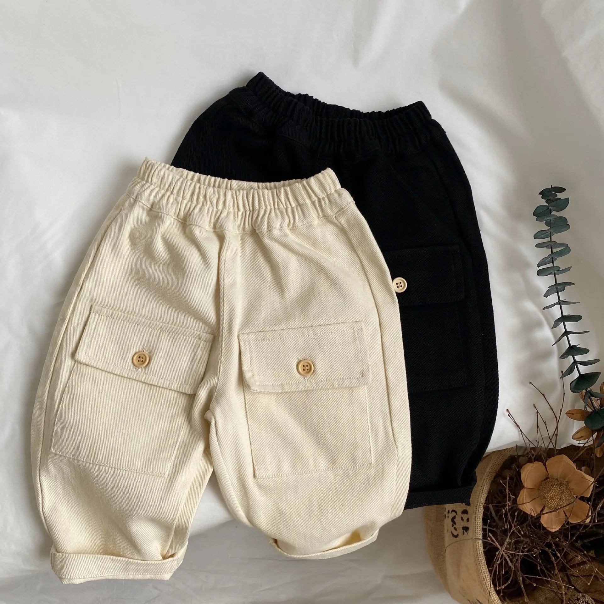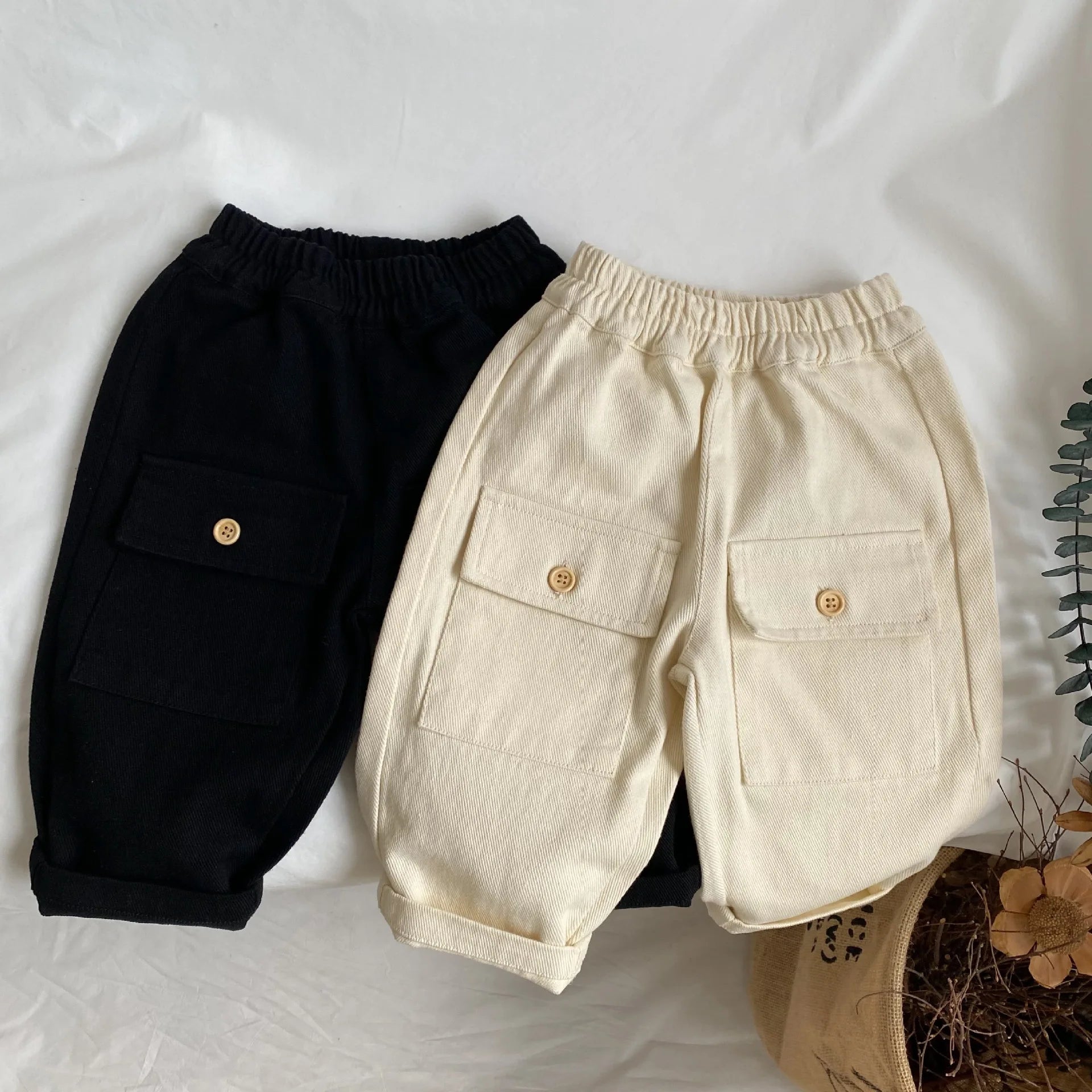 Introducing our Front-Pocket Solid Casual Pants, the perfect addition to your little one's wardrobe! Made with high-quality cotton, these pants offer a loose and comfortable fit. The mid-waist design and elastic waist closure ensure a secure fit for active kids aged 1-6 years. With their straight pant style and solid pattern, these pants are versatile for any occasion. The front pockets add both style and functionality. 🌟 Shop now and give your child the ultimate comfort and style! 🛍️