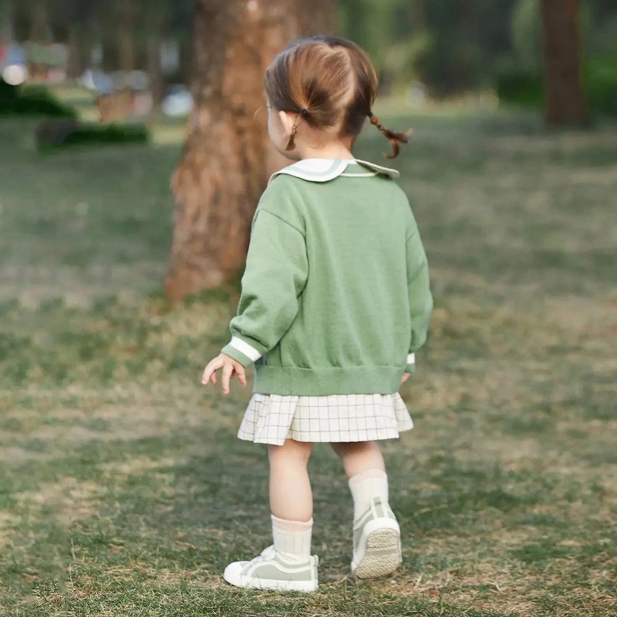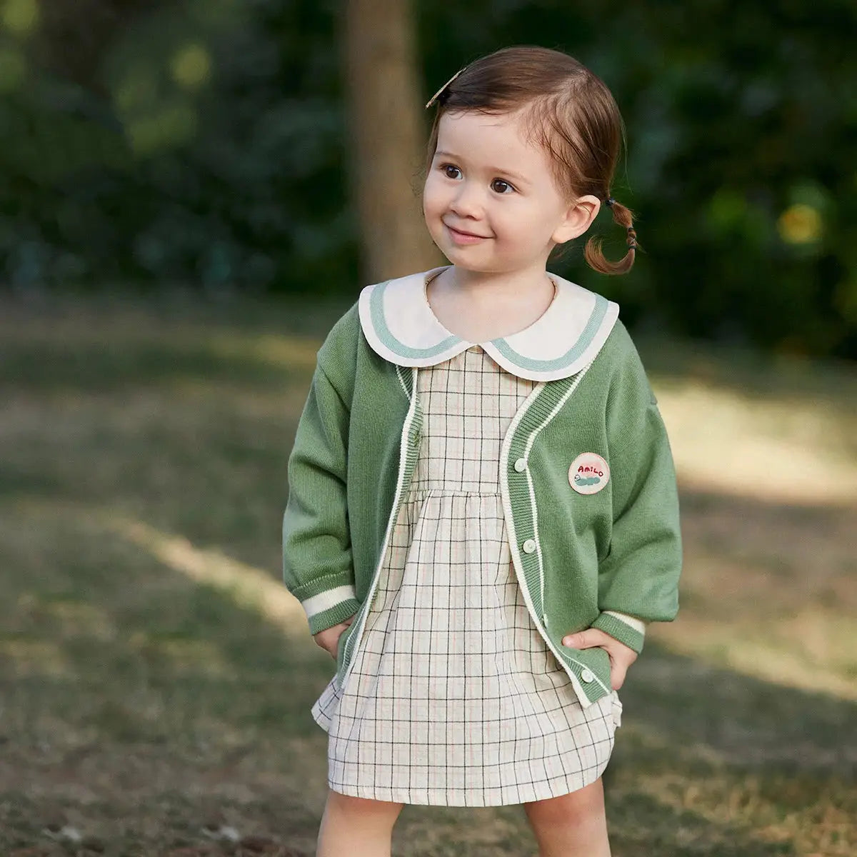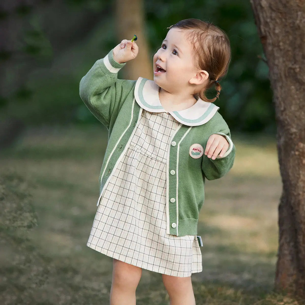 Dress your little girl in timeless charm with our Girls' Button-Down Cardigan & Plaid Dress Set! 🌸👗 Perfect for spring, this casual yet stylish set is designed for girls aged 1-7 years. Made from soft, breathable cotton broadcloth, the set includes a cozy long-sleeved button-down cardigan and a delightful plaid dress with a cartoon pattern. The turn-down collar and regular sleeve style add a classic touch, while the true-to-size fit ensures your little one stays comfortable all day. Whether for a family outing, a special occasion, or just a day of play, this adorable set will keep her looking cute and feeling great! 🌷✨🧒