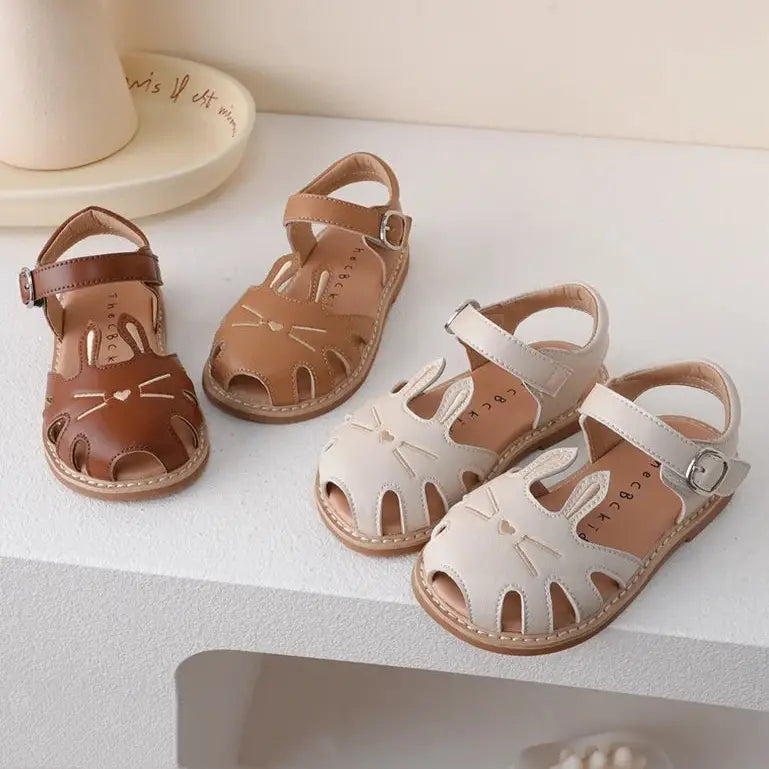 Your little girl will love stepping out in these adorable Girls' Cartoon Cat Sandals! 😻🌞 Perfect for summer, these cute sandals feature a breathable microfiber upper with playful cat cut-outs that add a fun touch to any outfit. The soft leather ensures comfort, while the flat rubber soles provide all-day support. With easy-to-use Velcro closures, these sandals are both stylish and practical for little feet on the go! 🐾✨