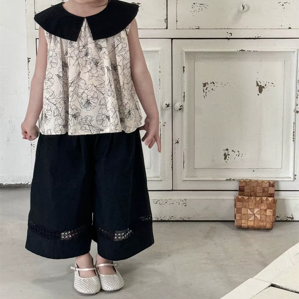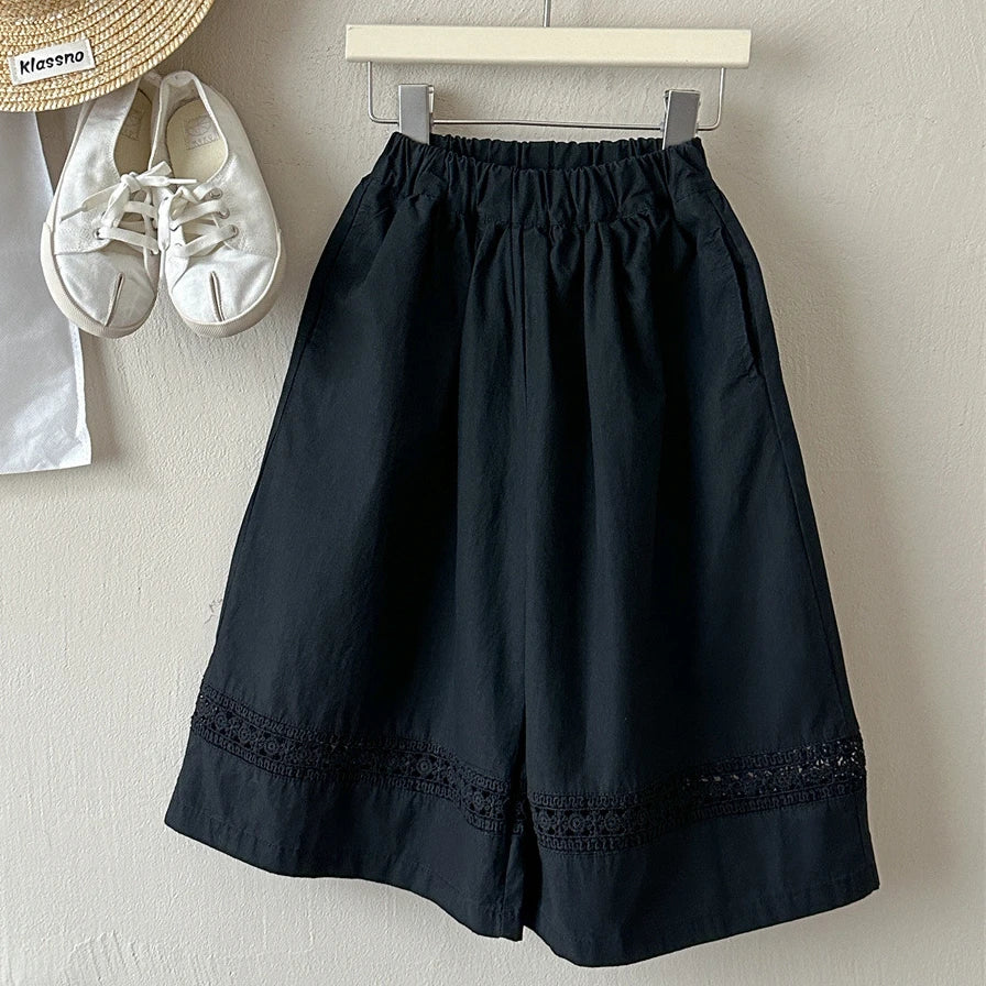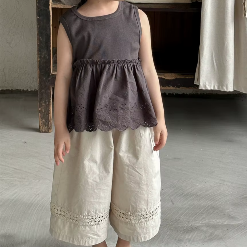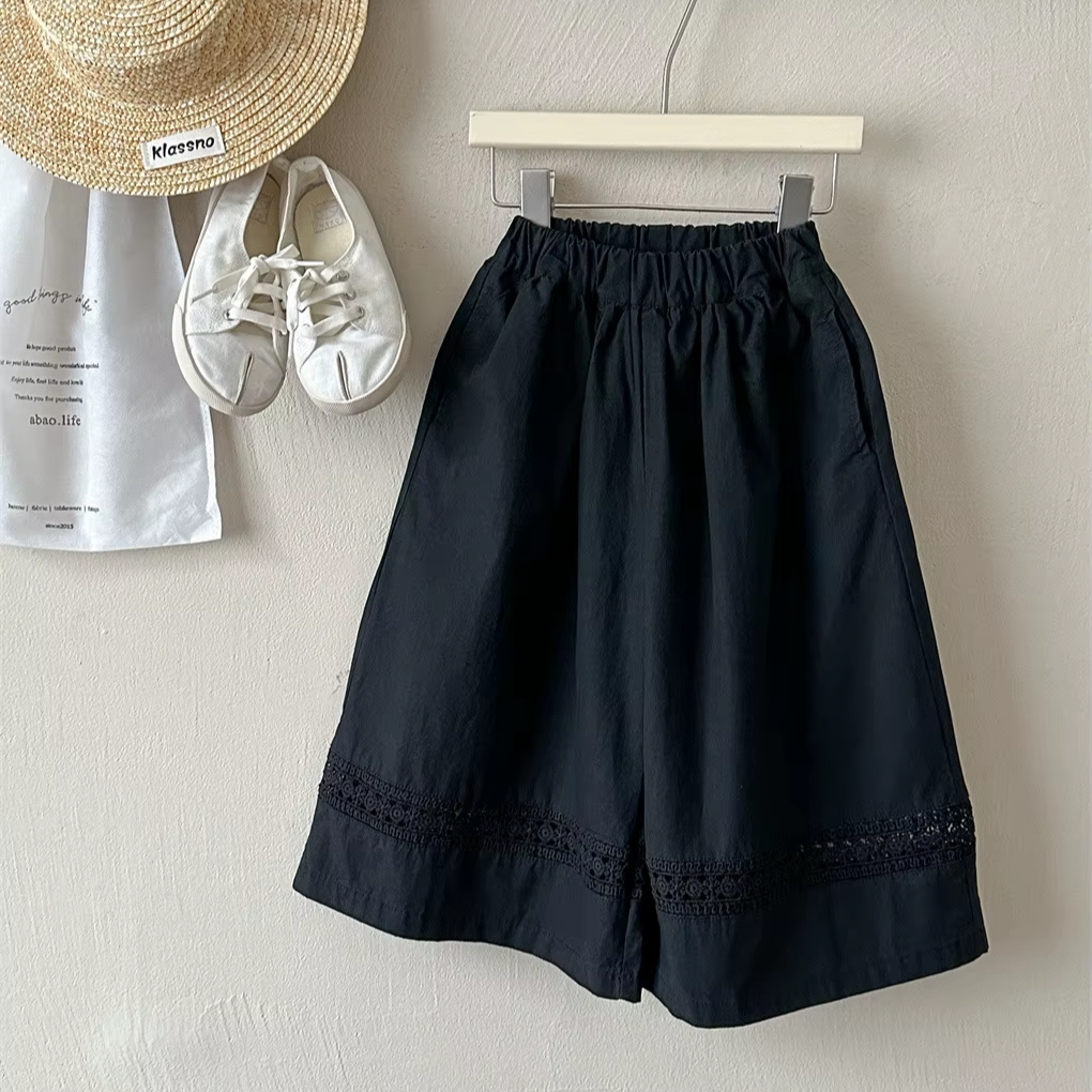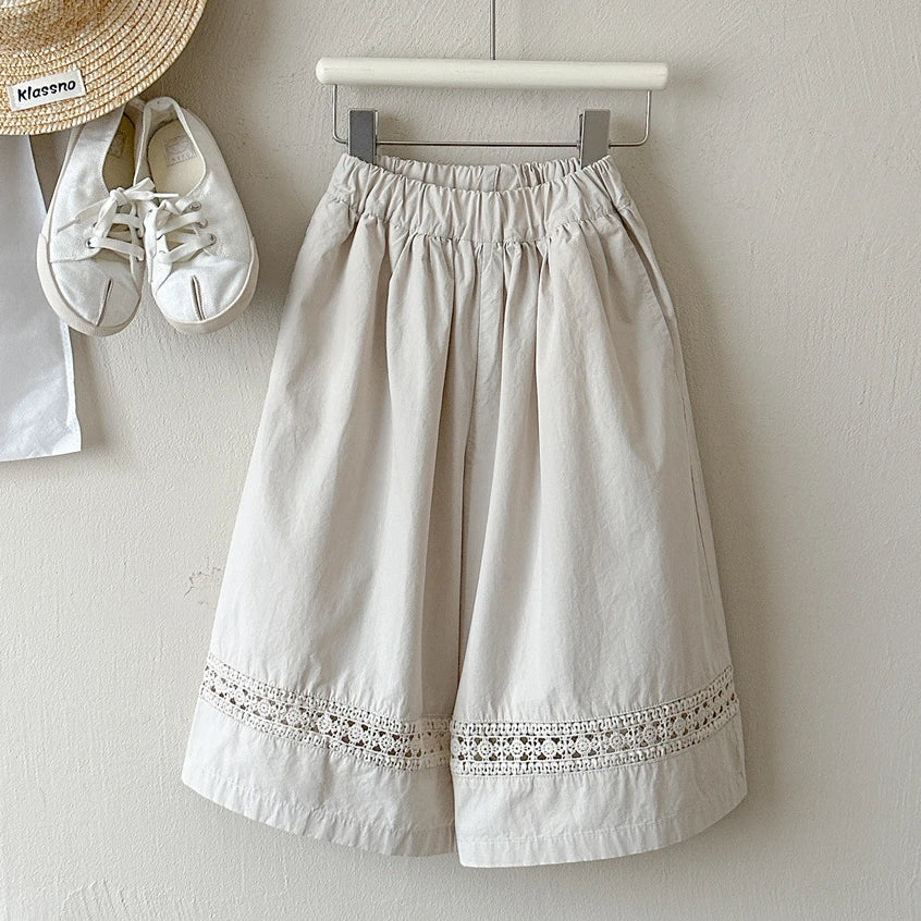 Give your little girl the perfect blend of comfort and style with our Solid Wide-Leg Lace Pants! ✨