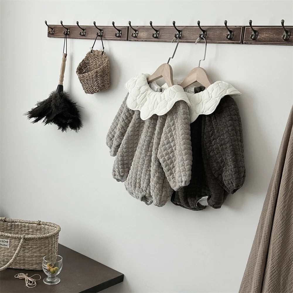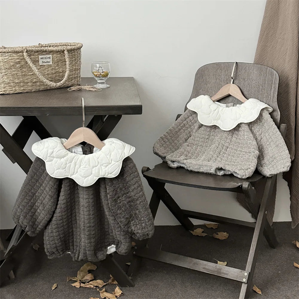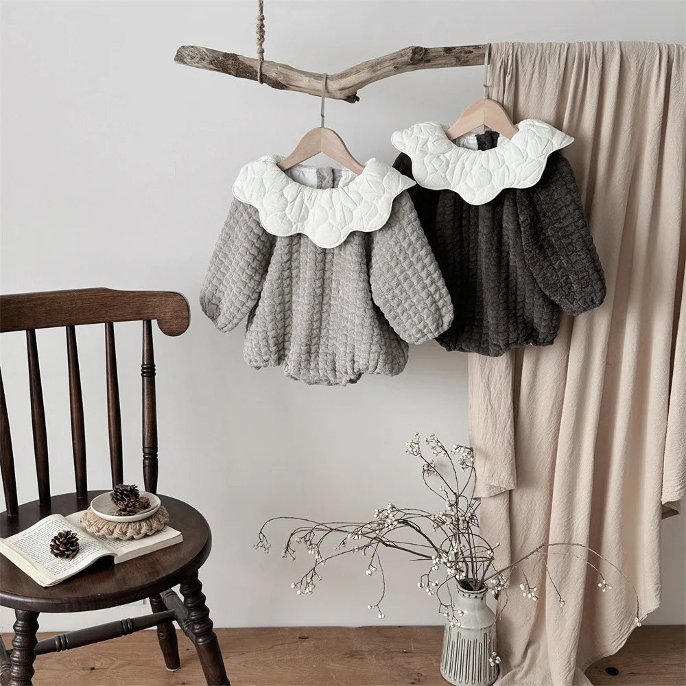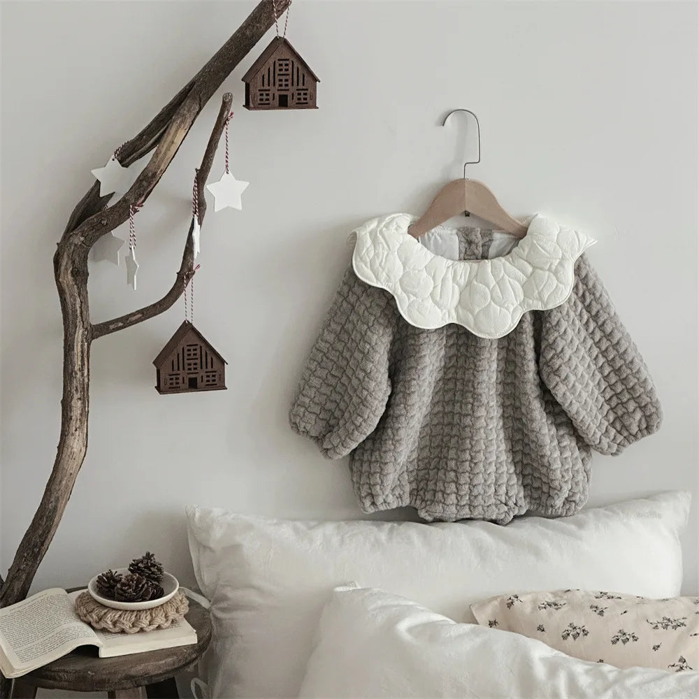 Wrap your little princess in double the sweetness with our Girls' Double-Layer Long-Sleeve Onesie! 🎀 This darling winter essential, designed for precious ones aged 6-36 months, combines comfort and charm in the most adorable way. Crafted from premium soft cotton, this onesie features an enchanting Peter Pan collar that adds a touch of vintage elegance to every wiggle and crawl. The double-layer design provides extra warmth for those chilly days, while the true-to-size fit ensures your baby girl stays cozy and comfortable. Whether it's tummy time, first steps, or snuggle sessions, this onesie brings both practicality and prettiness to every moment! 👶✨