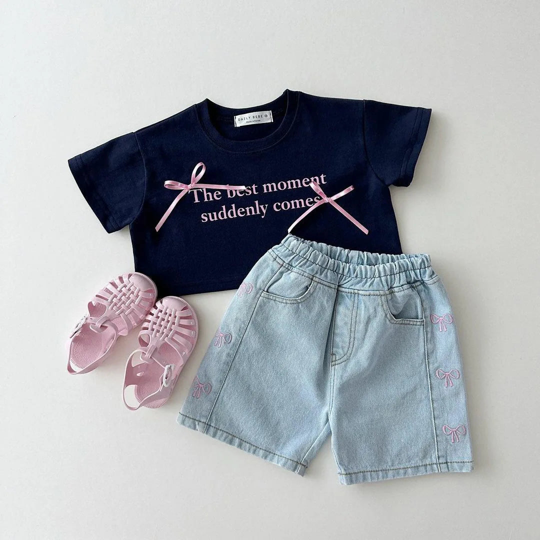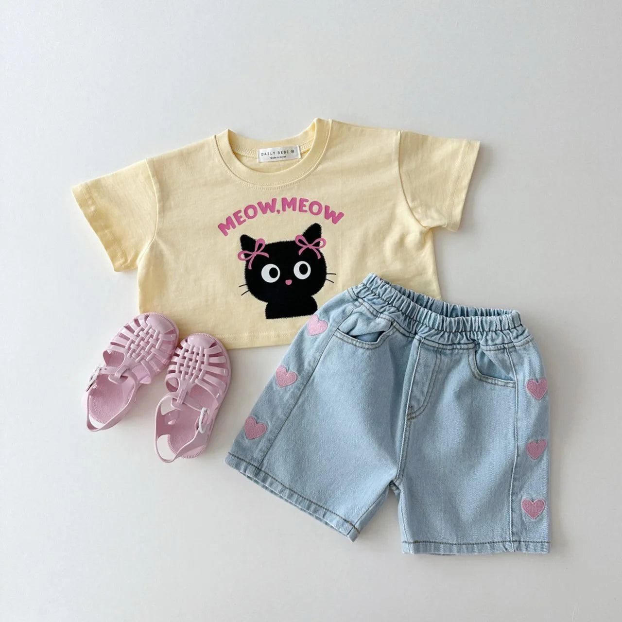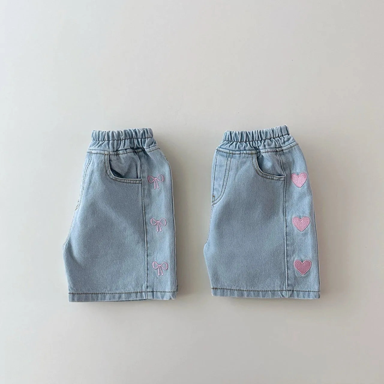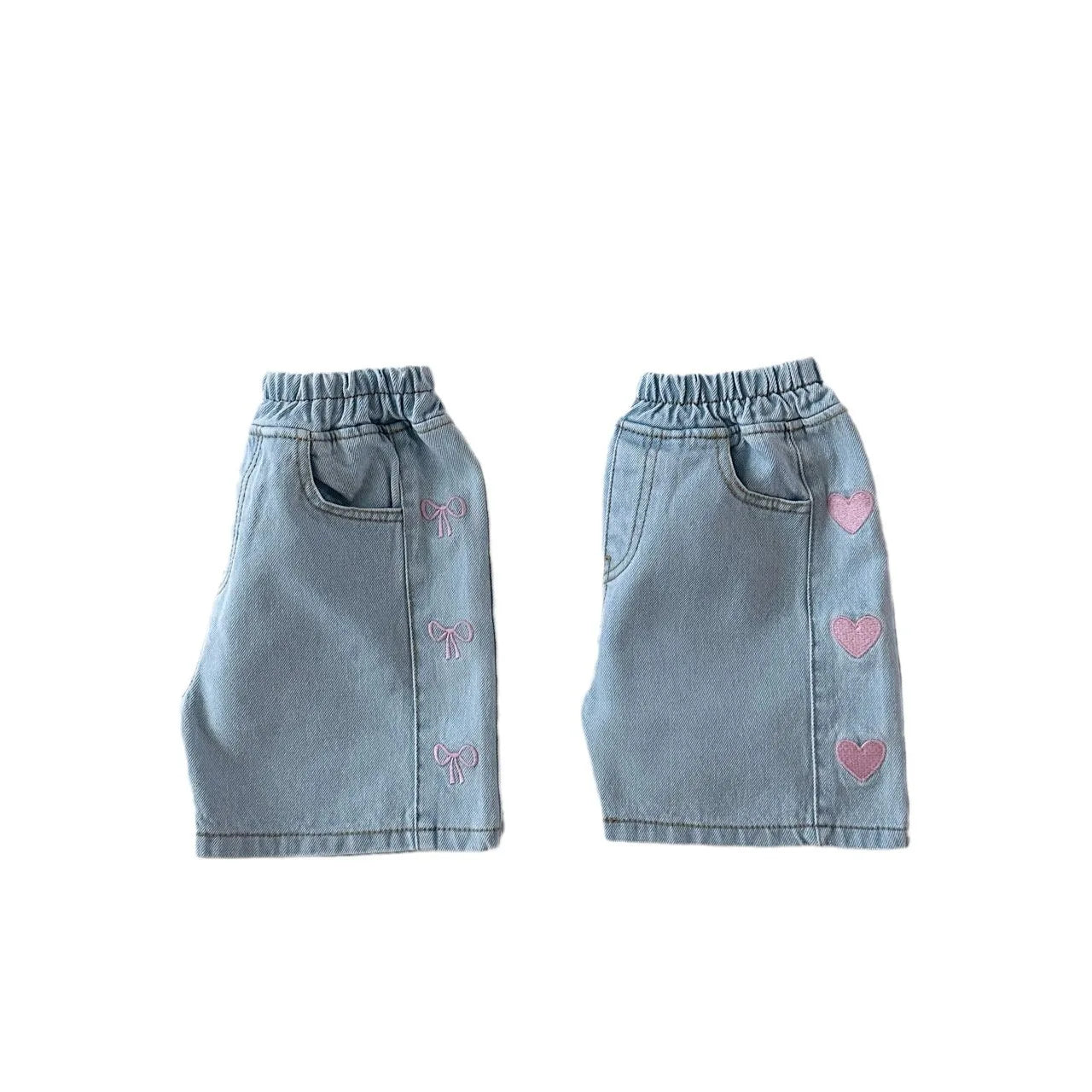 Add a touch of charm to your little girl's summer wardrobe with our Girls Heart & Bow Denim Shorts! 💖👧 Perfect for girls aged 4-6 years, these adorable shorts are made from soft, high-quality cotton, ensuring comfort and durability. The cute heart and bow pattern adds a playful touch, making these shorts a delightful choice for any summer outing. Designed with a mid-waist and elastic closure, they offer a comfortable fit that stays true to size. The loose fit style ensures freedom of movement, perfect for active playdates, family outings, or just lounging at home. Let your little one step out in style and comfort with these sweet and stylish denim shorts! 🌞🦋✨