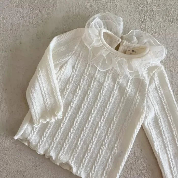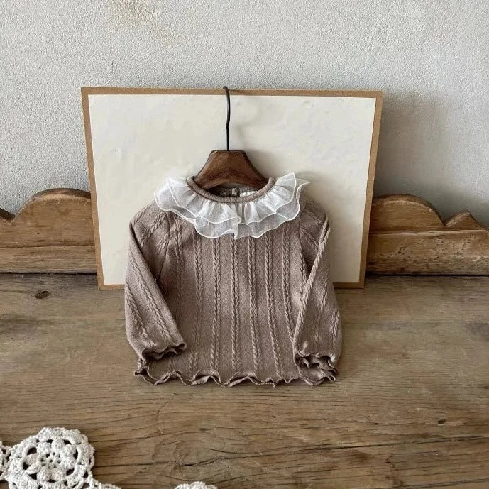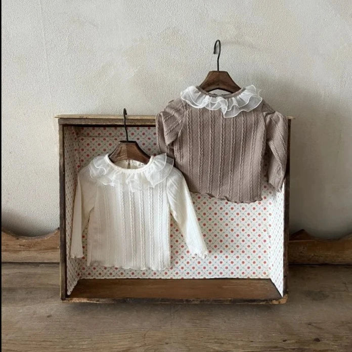 Dress your little one in style with our Girls' Lace Collar Blouse. Made from soft and breathable cotton, this casual blouse is perfect for ages 9-36 months. The O-neck collar and solid pattern add a touch of elegance, while the long sleeves provide warmth. Designed to fit true to size, this blouse is comfortable for all-day wear. Whether for a special occasion or everyday wear, our Girls' Lace Collar Blouse is a must-have addition to your little girl's wardrobe! 🌸👧🏻😍