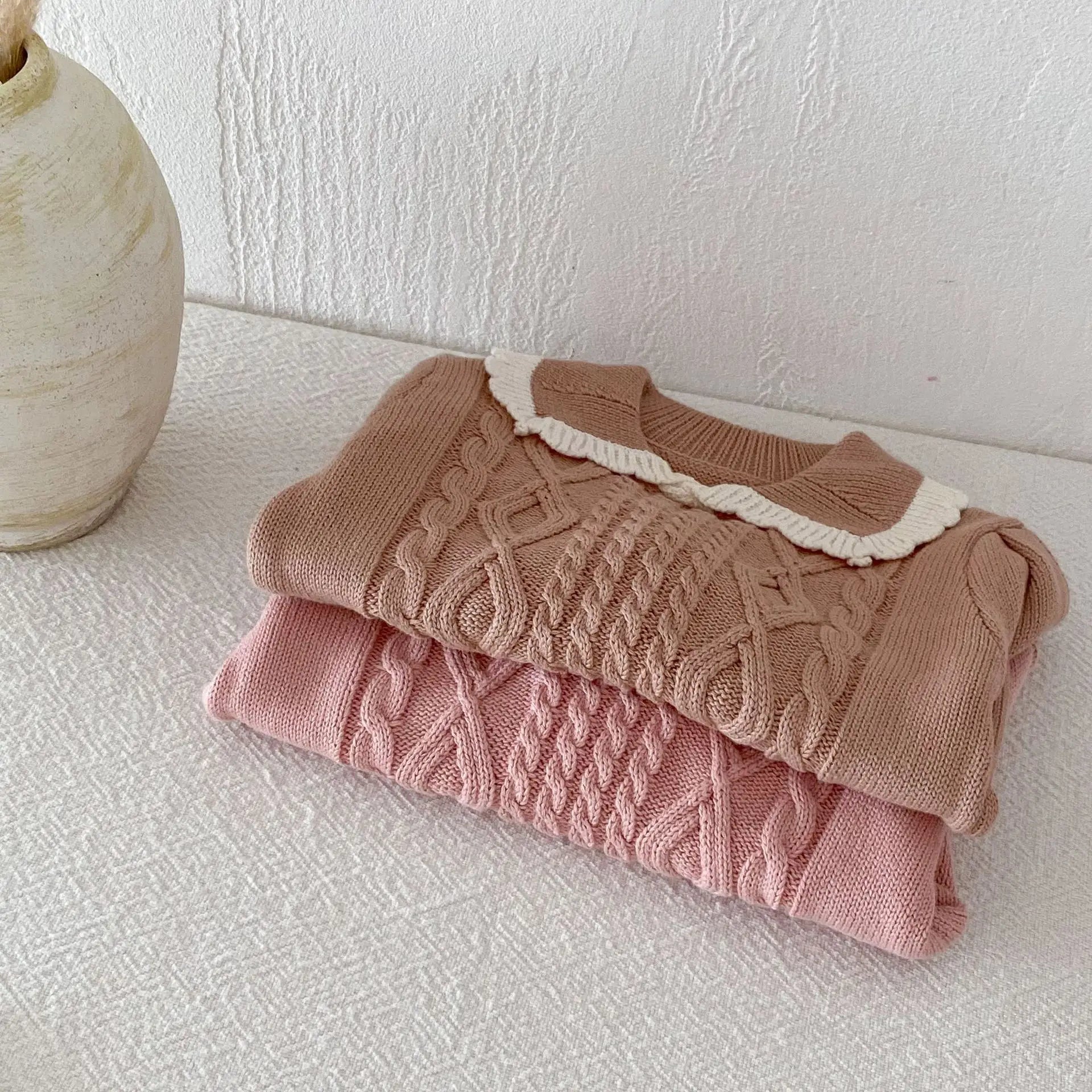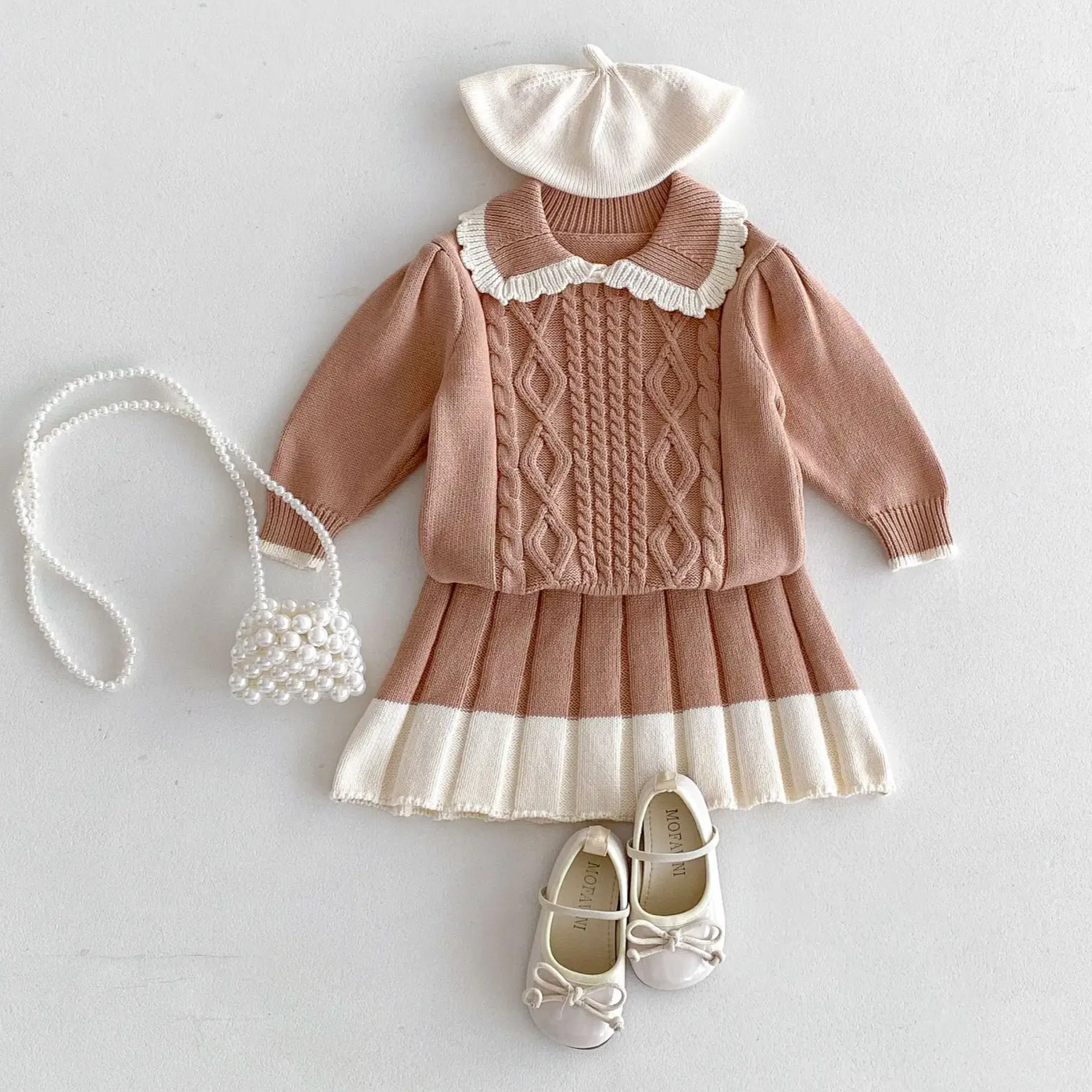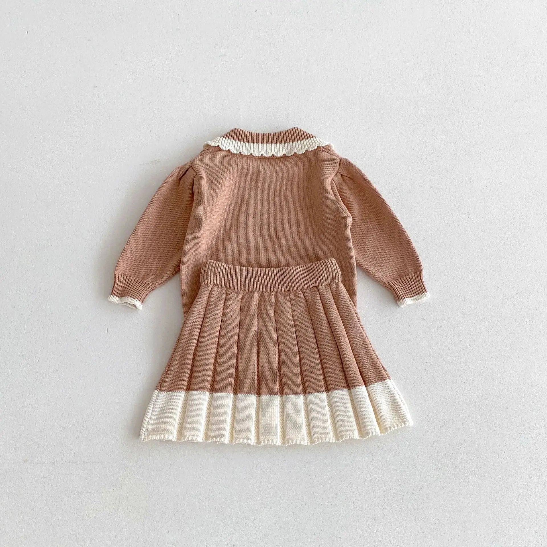 Elevate your little girl's autumn wardrobe with our Girls Lace Lapel Knit Sweater & Pleated Skirt set! 🍁👧 Perfect for girls aged 1-6 years, this dressy ensemble is designed to impress. The set features a cozy knit sweater with a delicate lace lapel and long sleeves, providing warmth and style. Paired with a chic pleated skirt, it creates an effortlessly elegant look. The turn-down collar and pullover closure add a classic touch, while the regular sleeve style ensures a comfortable fit. Made to fit true to size, this set is perfect for special occasions, family gatherings, or a stylish day out. Let your little one shine this autumn with this beautiful and sophisticated outfit! 🌟👗✨