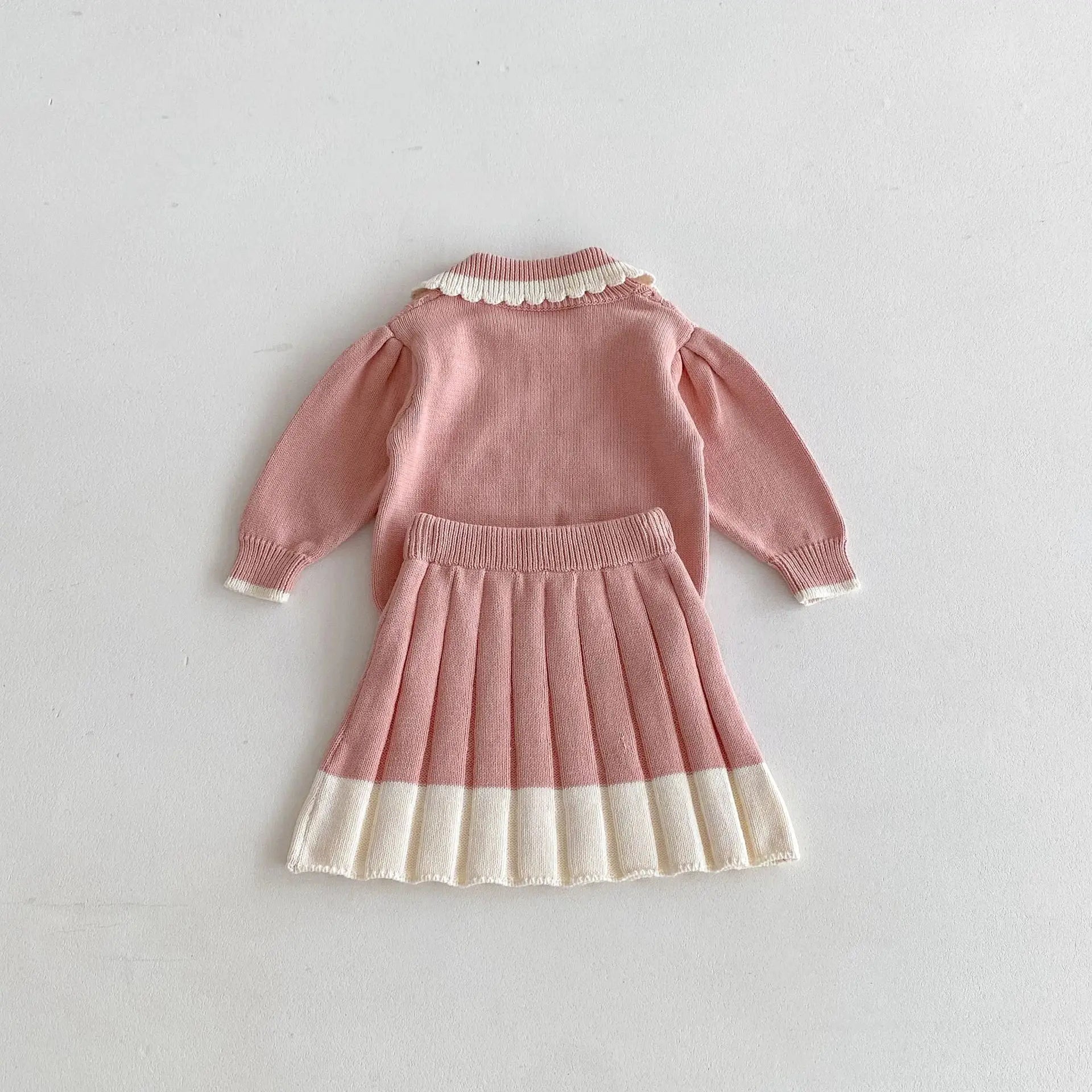 Girls Lace Lapel Knit Sweater & Pleated Skirt