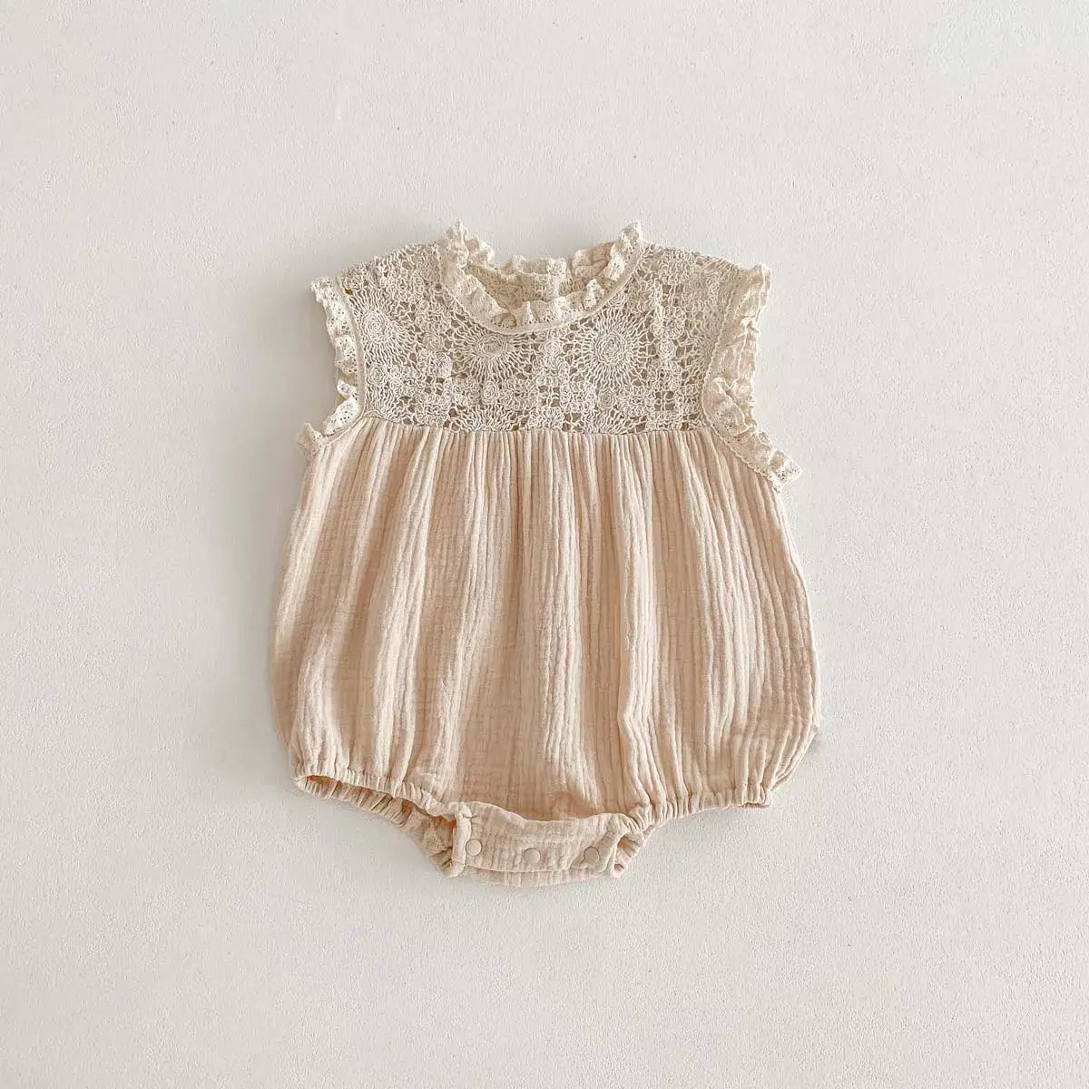 Keep your baby girl cool and cute this summer with our Girls Sleeveless Lace Onesie 🌸☀️! Made from soft, breathable cotton, this onesie is perfect for warm days. The delicate lace detailing adds a touch of sweetness, while the sleeveless design ensures comfort and easy movement. Ideal for daily wear, this solid-patterned onesie is a summer wardrobe must-have for baby girls aged 6 to 24 months. Fits true to size, making it perfect for playdates, outings, or simply staying cool at home