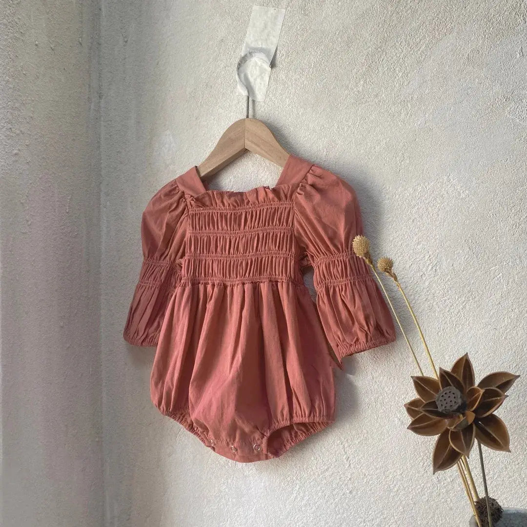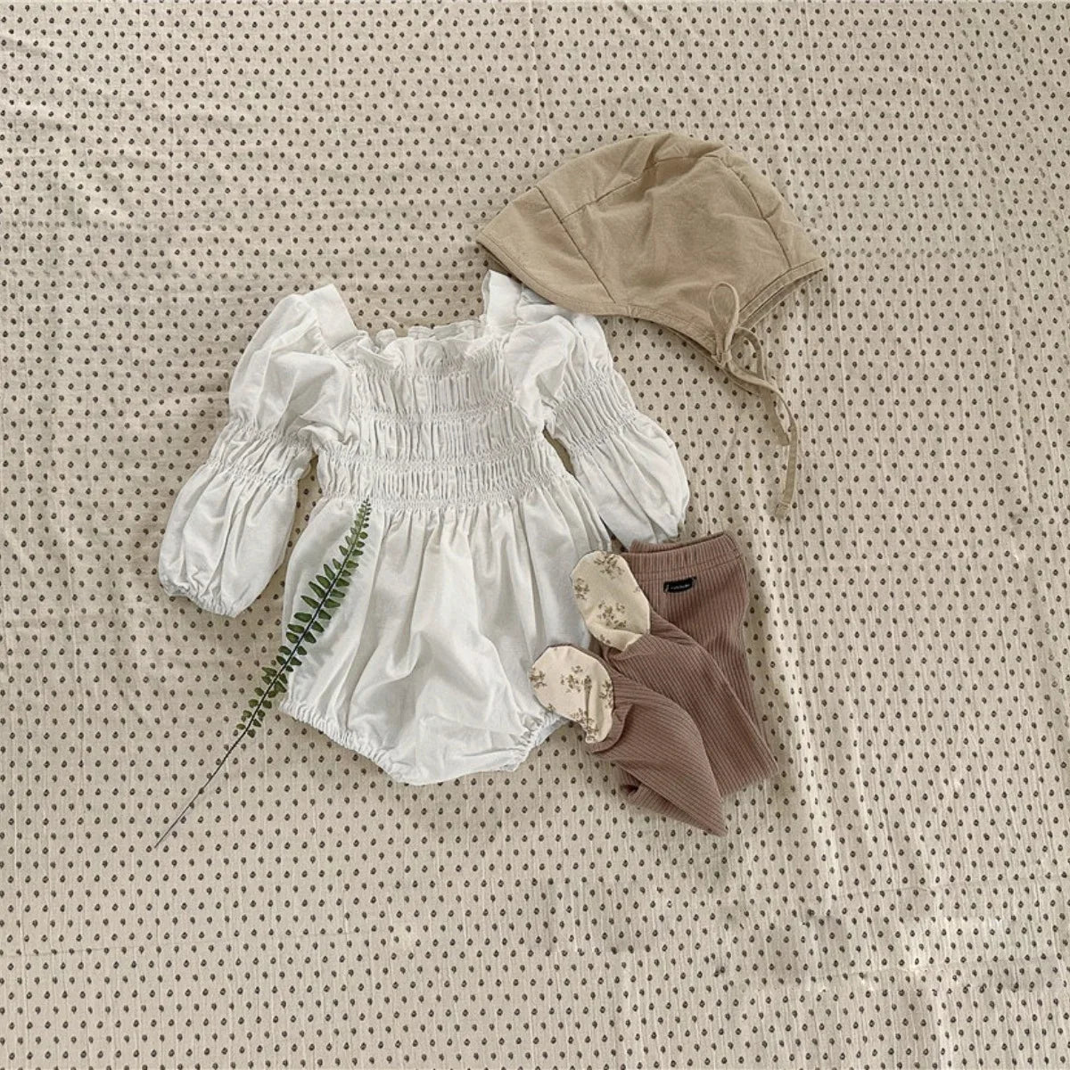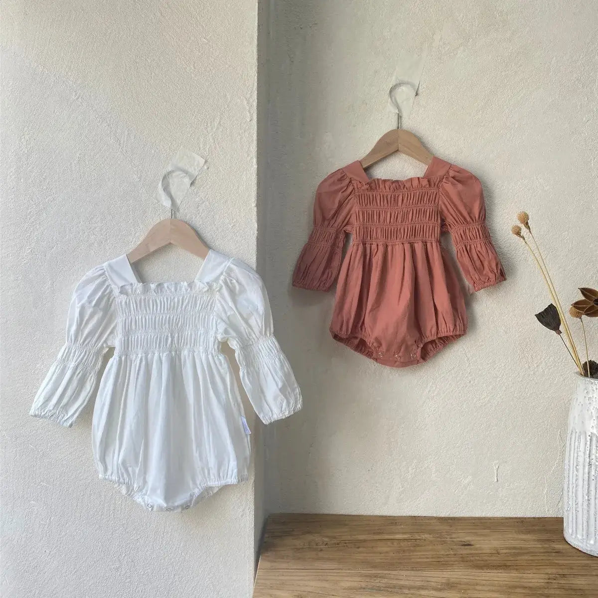 This adorable Girls Long Sleeved Ruched Onesie is the perfect outfit for keeping your little one cozy and comfy during spring and fall! 🌸 Crafted from 100% breathable cotton, this onesie features a soft, ruched design and a trendy square neckline that adds a touch of style. The long sleeves provide extra warmth on cooler days, making it ideal for layering or wearing on its own. Whether your baby girl is crawling around the house or playing at the park, this versatile onesie is sure to become a favorite in her wardrobe. 😊 #babyclothes #springfashion #ruchedonesie