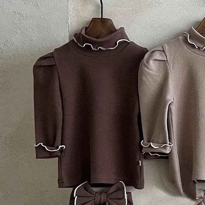 Girls Long-Sleeved Ruffle Turtleneck Top