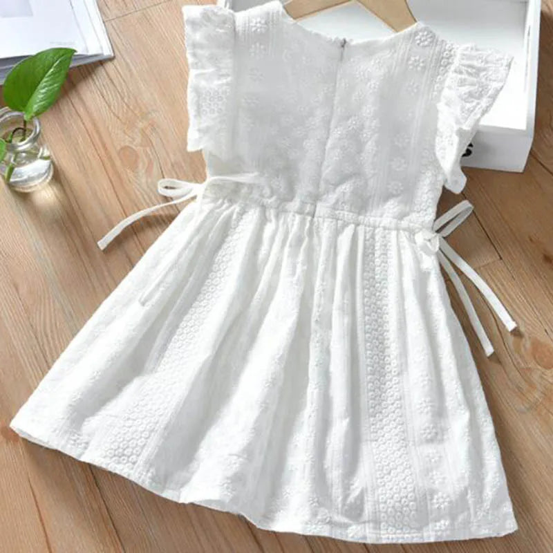 Dress your little girl in this charming Girls' Sleeveless Embroidered Dress. 🌸 Perfect for summer, this knee-length dress is made of soft and breathable cotton, ensuring comfort all day long. The O-neck collar and A-line silhouette add a touch of elegance, while the ruched decoration adds a playful flair. With its solid pattern and regular sleeve style, this dress is a versatile choice for any occasion. Available in sizes ranging from 1 to 12 years, this dress fits true to size. Make her feel like a princess with this adorable dress! 👸